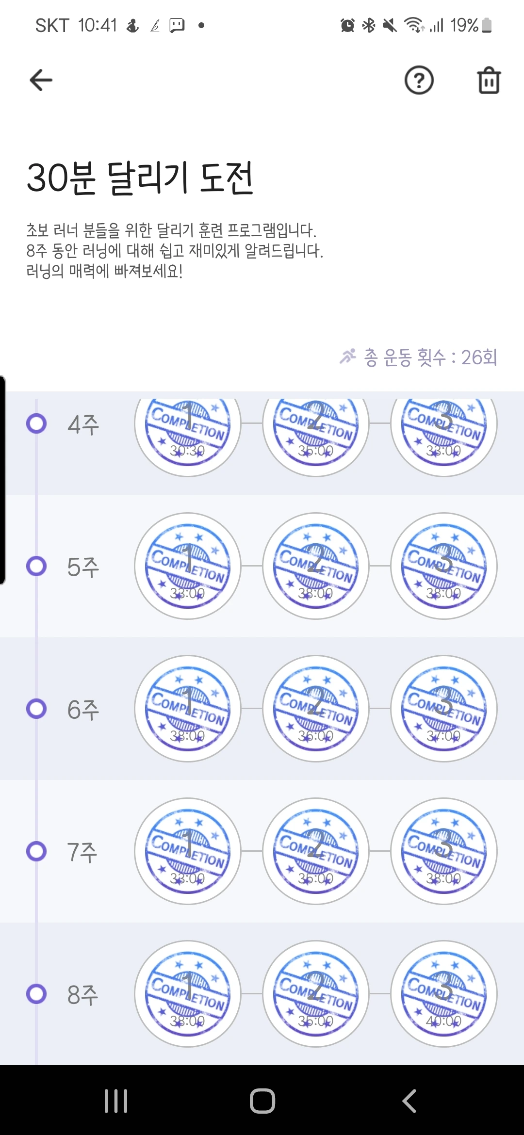 이걸 다 하면 이제 마라톤 5km는 뛸 수 있게 된 거라는데, 어제 12월 부천 복사골 마라톤 공지를 보고 아주 약간 마음이 동하긴 했다.