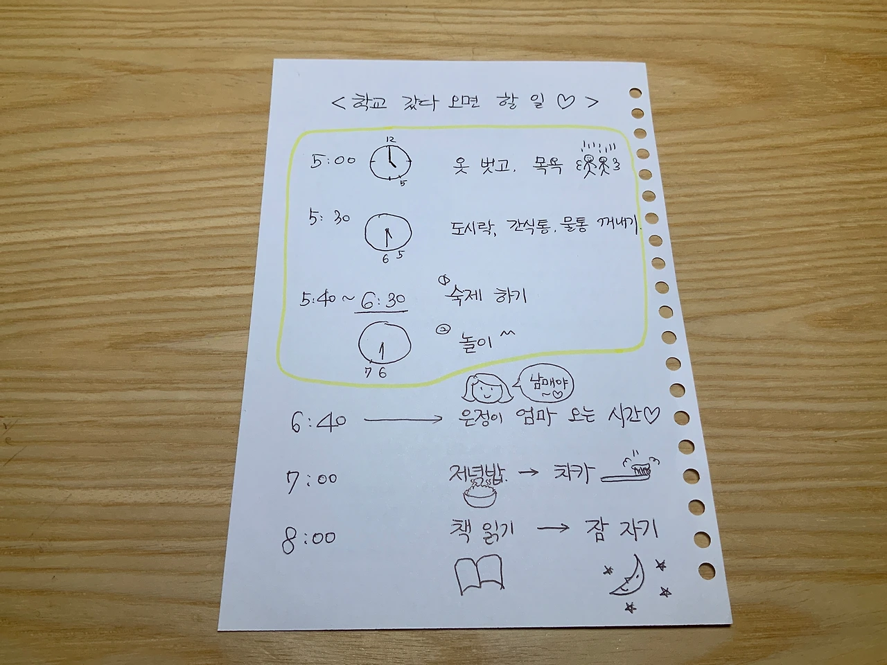 "엄마, 우리가 해야 할 일에 대한 시간을 다 써주세요.