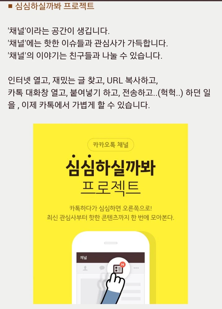 카카오톡 채널 메인에 떴어요!