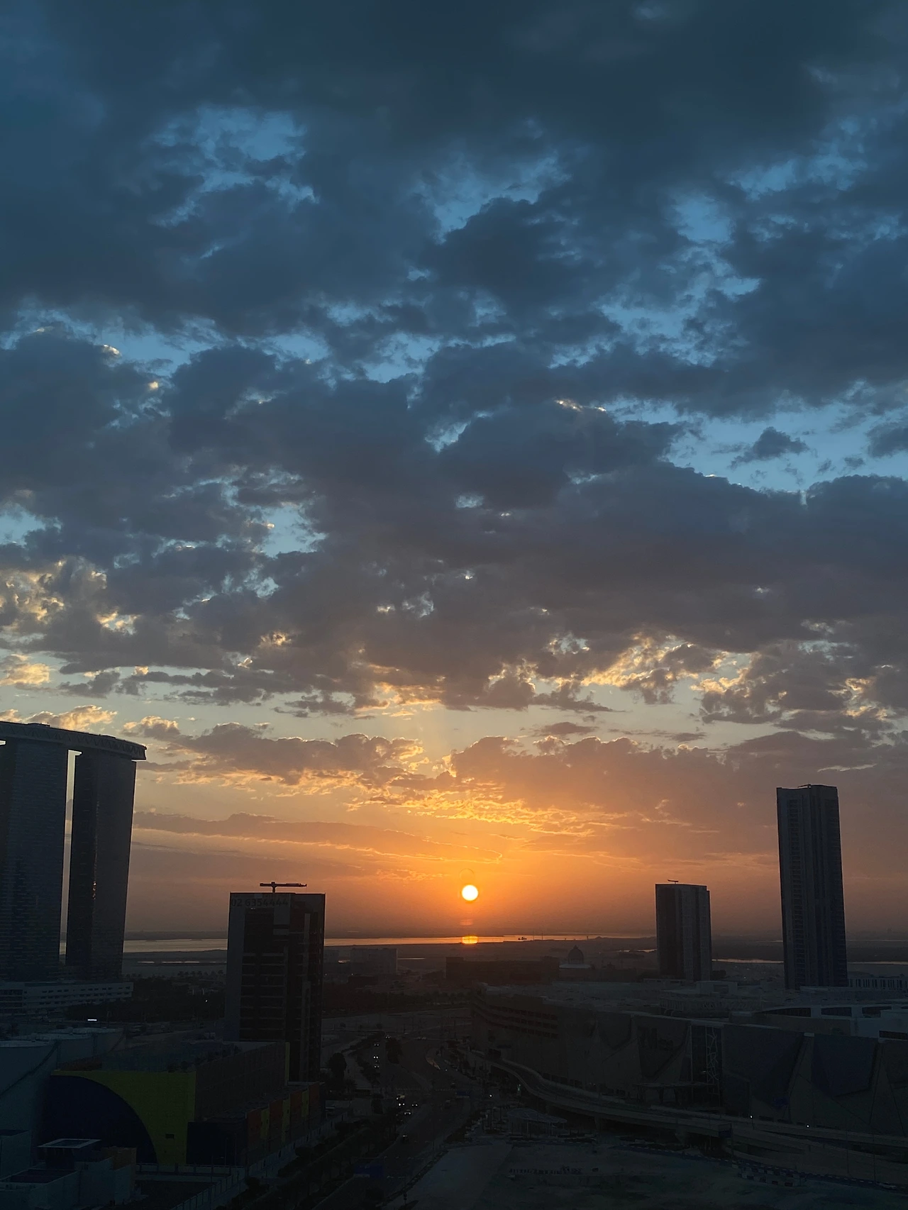 모래먼지와 미세먼지 그리고 공사먼지의 대환장 콜라보를 이루는 아부다비에서 좀처럼 마주하기 힘든 광경이다. 태양이 비추는 저 끝에 저렇게 바다가 있었구나.