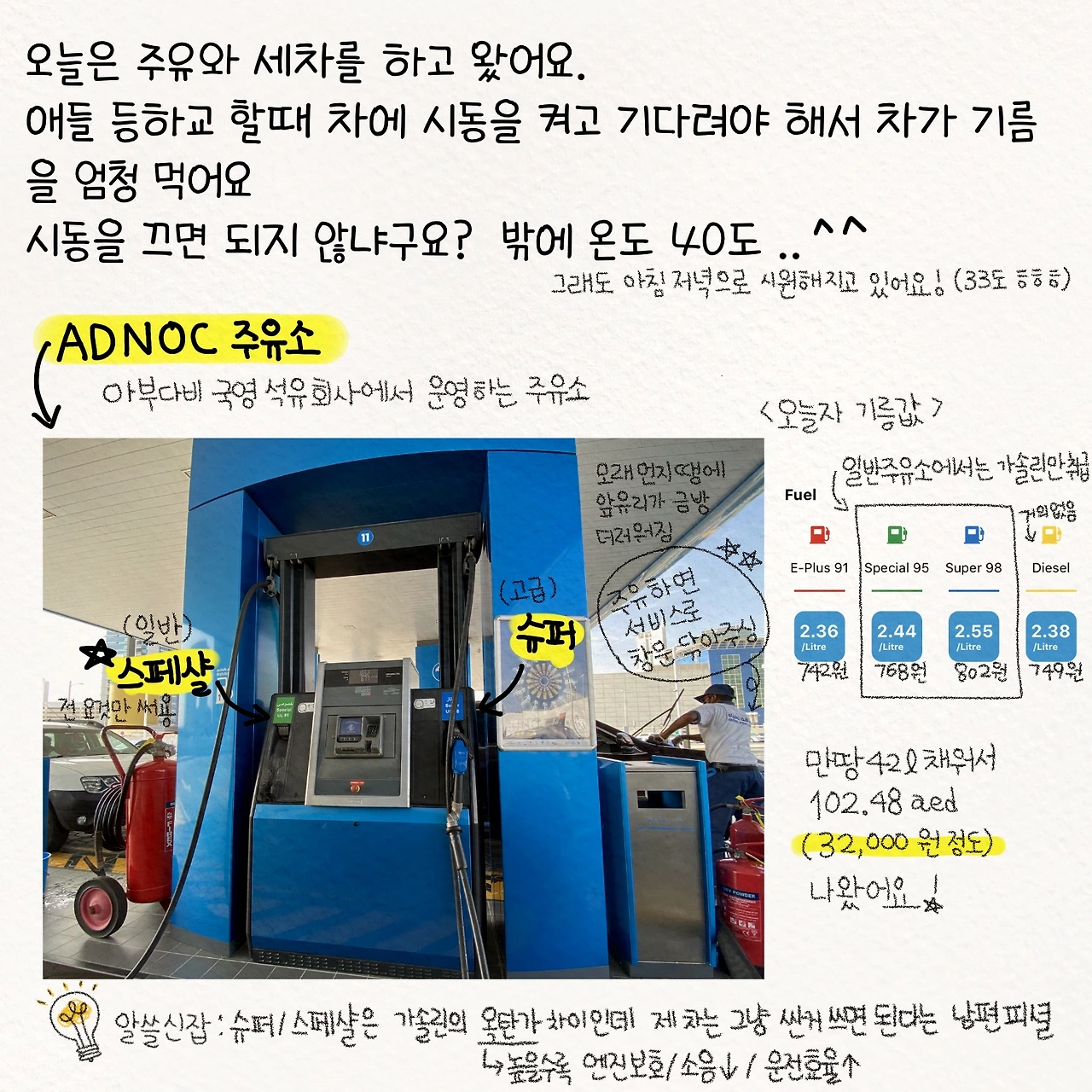 아부다비 주유소 기름값 얼마나 싼가?