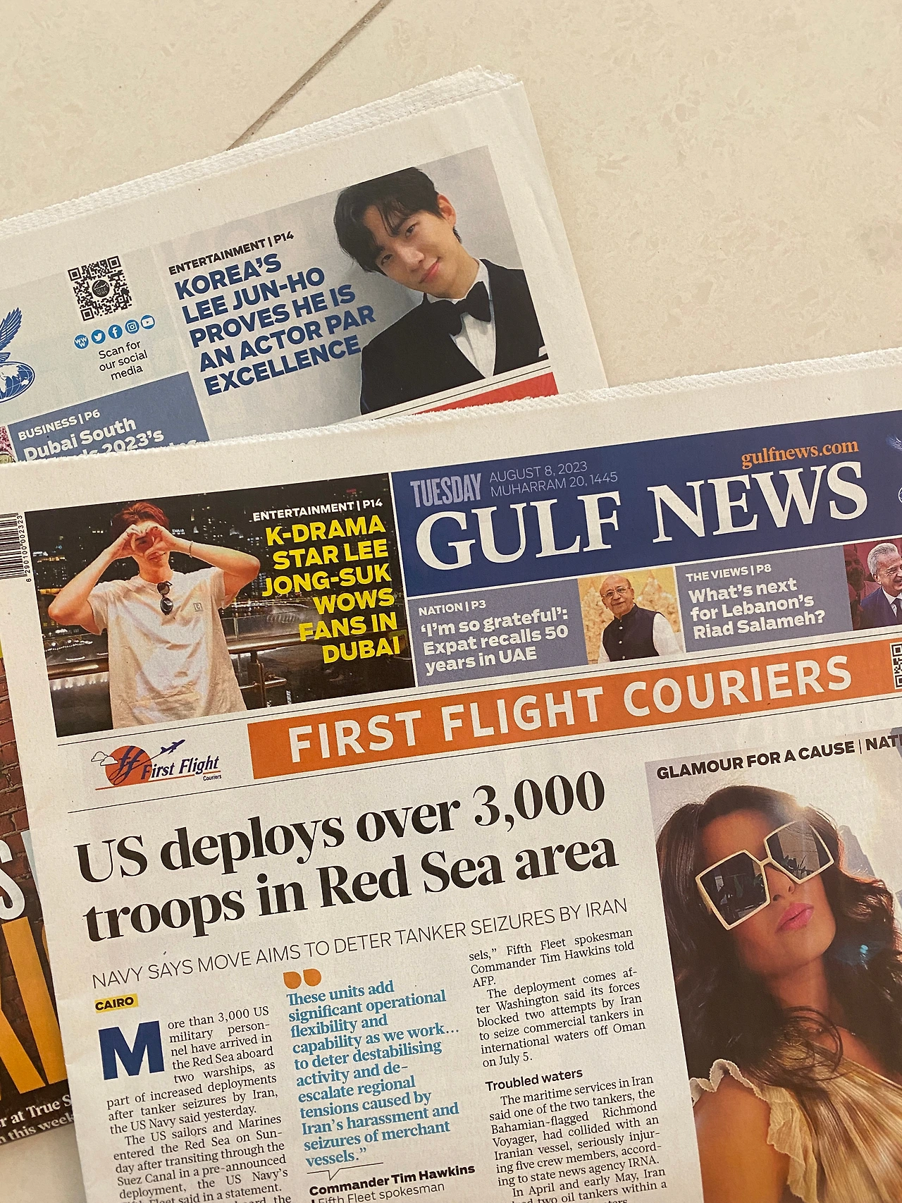 UAE에서 발간되는 유력 일간지에는 5~6 종류가 있는데 그중 가장 읽기 편한 내용 위주로 다루고 있는 것이 Gulf news입니다. 타 신문보다 컬러풀하고 종이질도 빤짝빤짝한 것이 저 같은 여성 독자들을 위한 신문이라는 것이 느껴지지요. 정치, 사회, 문화 등 다양한 주제를 다루고 있지만 연예기사만큼은 한국의 소식을 빼놓지 않고 있어서 보는 재미가 쏠쏠합니다.