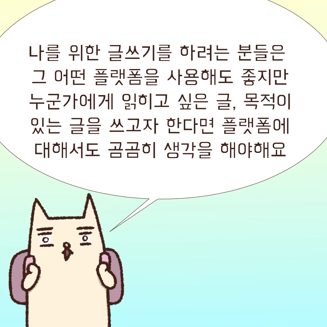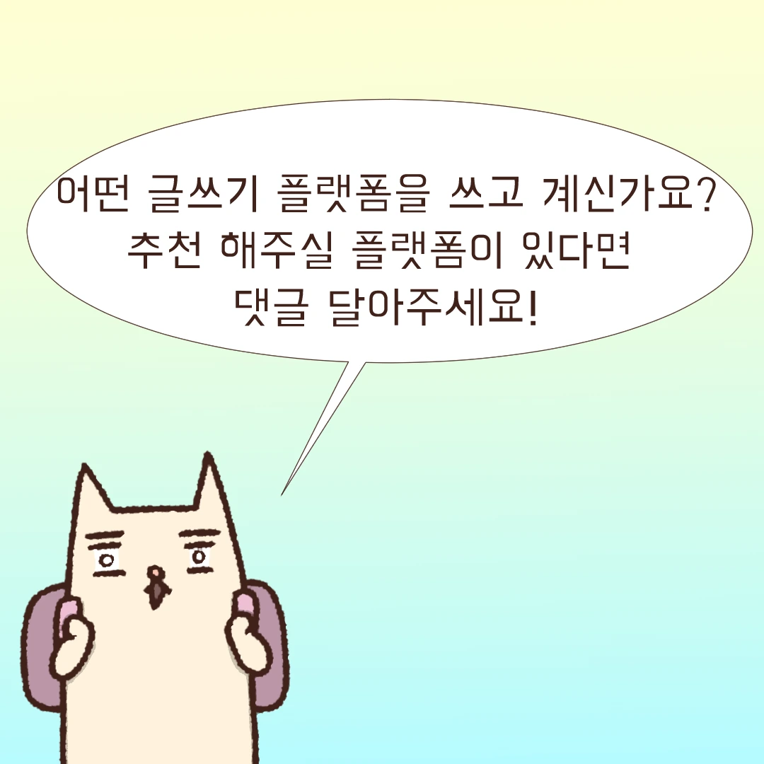 나와 잘 맞는 플랫폼을 선택하는 것만으로도 꾸준한 글쓰기에 자극을 줄 수 있답니다.