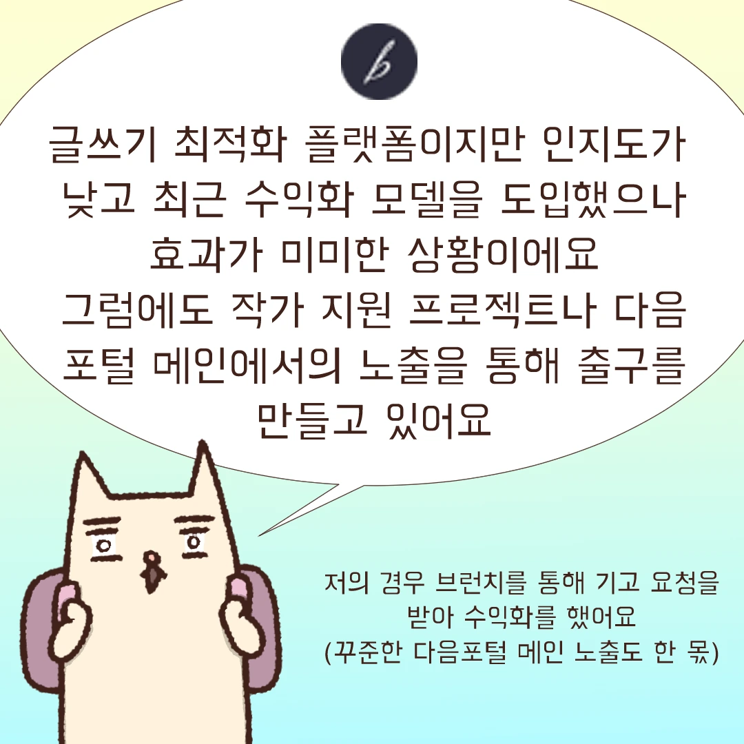 그런 의미에서 (홍보는 아니지만) 저는 브런치를 통해 다양한 기회와 글쓰기 영감에 자극을 주는 작가님들을 만날 수 있었습니다. 이 플랫폼이 꾸준히 지속되었으면 하는 마음을 담아 글을 마칩니다.