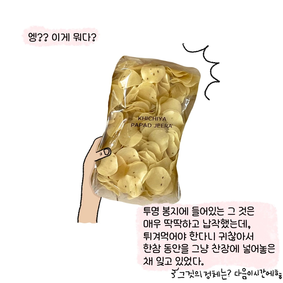 인도 친구는 과자를 튀겨서 소금, 커민, 칠리 가루를 뿌려서 먹으라고 추천해주었는데, 플레인으로 먹어도 충분히 맛있었습니다.