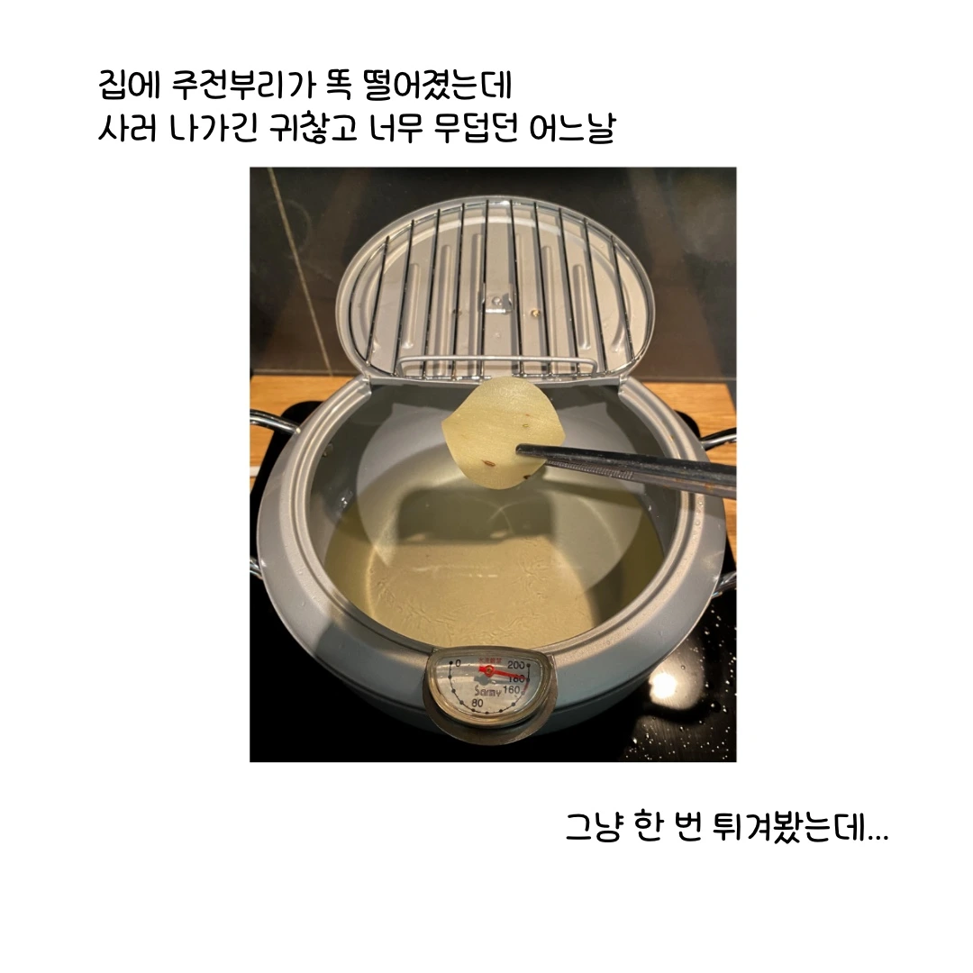 동영상 속의 튀김 냄비는 몇 년 전 한창 유행할 때, '나도 집에서 맛난 튀김들을 직접 튀겨먹으리라!' 하고 호기롭게 주문했다가 기름 처리도 귀찮고 매번 닦는 것도 일이라 찬장 깊숙한 곳에 처박힌 채 살았는데 이번에 직접 튀겨먹는 인도 과자를 맛 본 이후로 우리 집에서 가장 열일하고 계십니다. 후훗