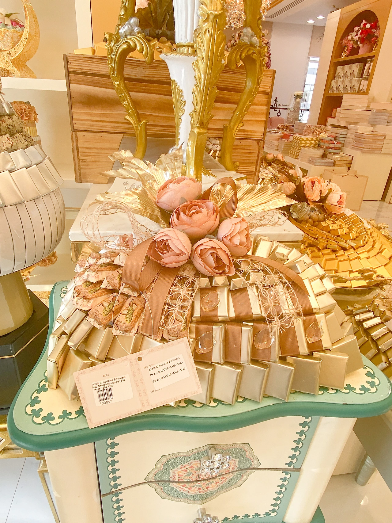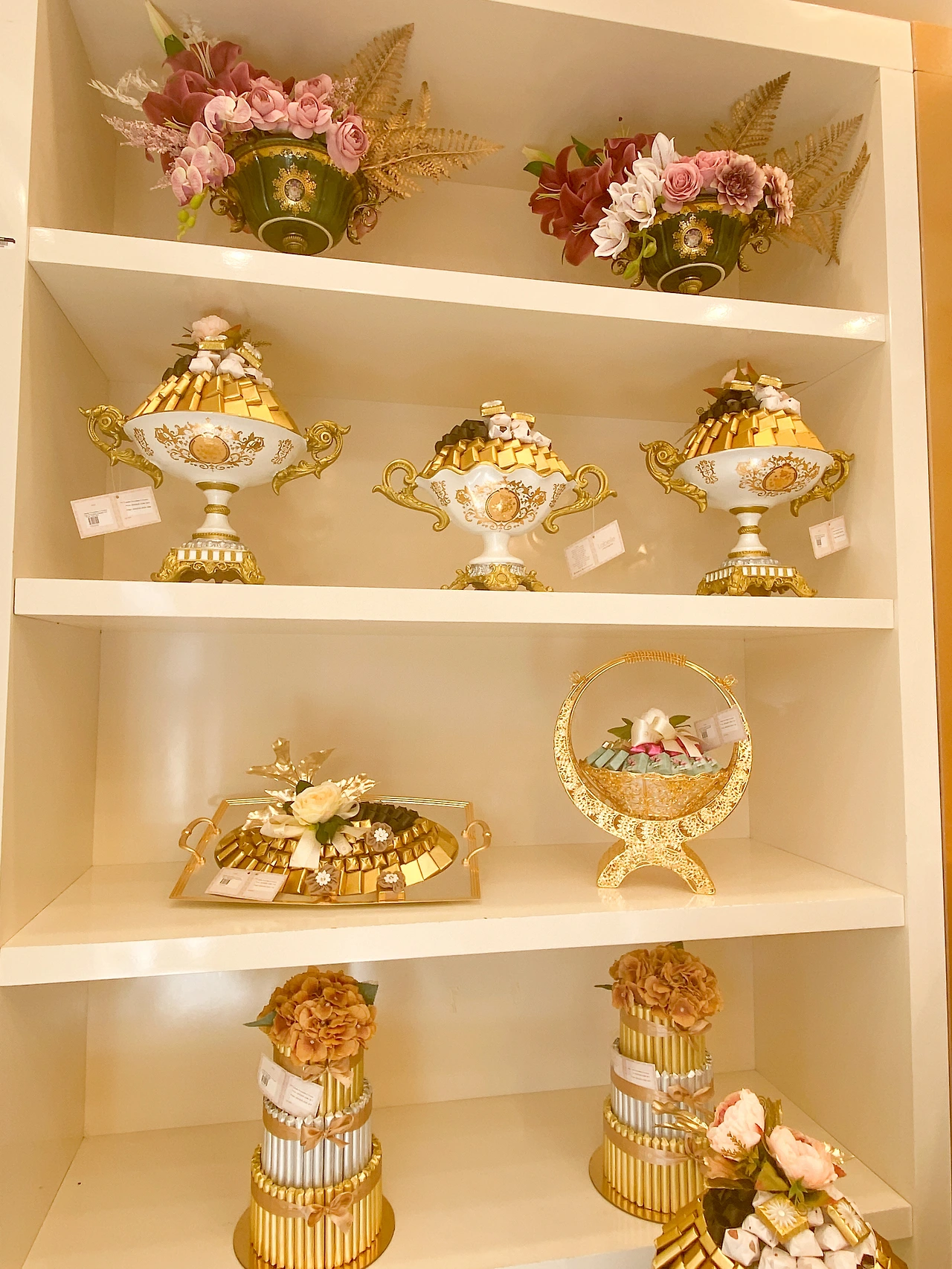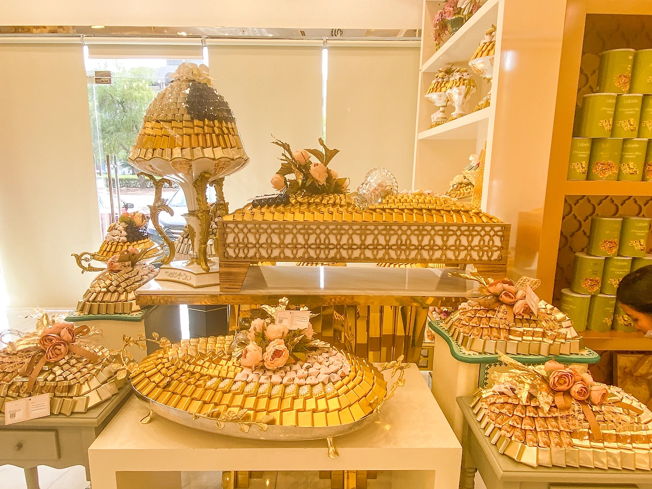아랍 현지인 집의 응접실에 초대되어 가보면 저런 황금빛의 초콜릿 혹은 대추야자 세트가 놓여 있는 것을 볼 수 있습니다.