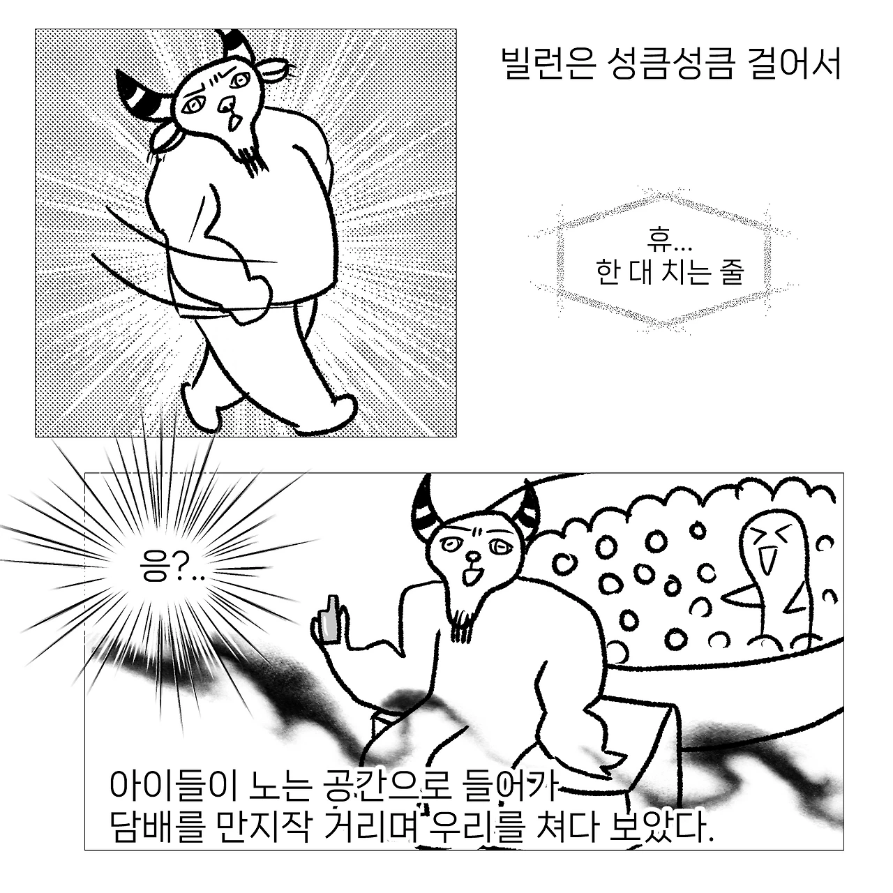 덕분에 한가로운 주말은 와장창 깨어졌고 아이들을 데리고 나올 수밖에 없었습니다. 당시 키즈카페에는 여자 스텝들 밖에 없었고, 나름 장신인 남편에게도 그런 태도를 취할 정도면 여자 스텝들의 이야기는 듣지도 않을 거라는 게 남편의 결론이었으니, 말 그대로 똥이 더러워서 피했었지요.