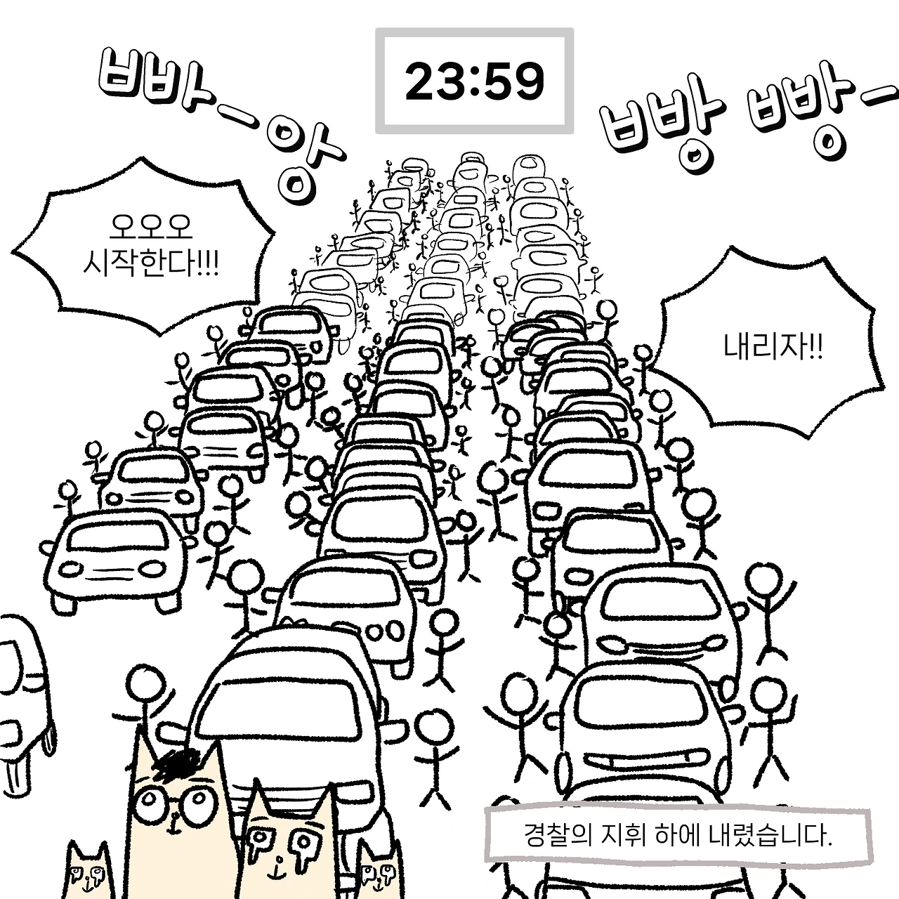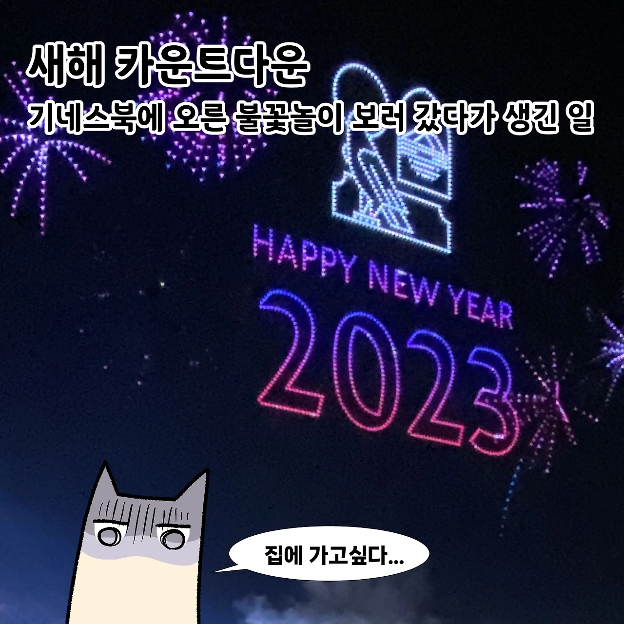 아이 낳고 사는 게 바빠 매년 새해 카운트다운조차 잊고 지내다가 올 해는 색다른 경험을 해보자며 도전해 봤습니다만, 네. 역시 사람은 안 하던걸 하면 삑사리가 나기 마련이지요. 하지만 덕분에 길바닥에서 새해를 맞는 아찔함과 처음 만난 사람들과 새해 인사를 나누는 즐거움을 경험해 보았으니 잊지 못할 하루가 되었습니다.