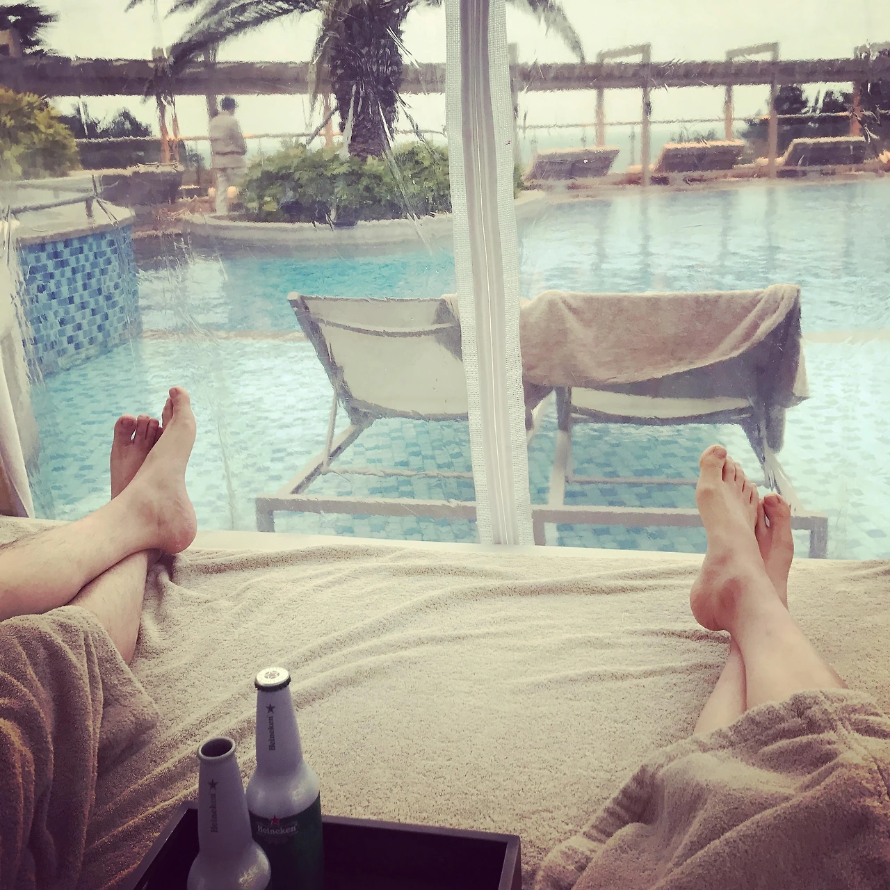 호텔에서 보낸 시간은 두 해 전 시험관 시술을 앞두고 그곳을 찾았을 때와 크게 다르지 않았다. 라운지에 늘어져 책을 읽고, 바닷바람을 맞으며 산책하고, 따뜻한 야외 풀(무려 어덜트 풀)에서 수영하고 자쿠지에 몸을 담근 후, 느긋한 저녁 식사와 와인을 즐기고, 누군가 정갈하게 세팅해준 침구를 바스락거리며 잠드는 하루. 하지만 그 사이 달라진 건 바로 우리였다. 시험관 시술을 앞둔 두려움, 임준생(임신 준비생) 시절의 스트레스를 훌훌 버리고 온전히 둘만의 휴가를 즐겼던 그때와 달리 지금의 우리는 좀처럼 '훌훌~'이 되지 않았다.