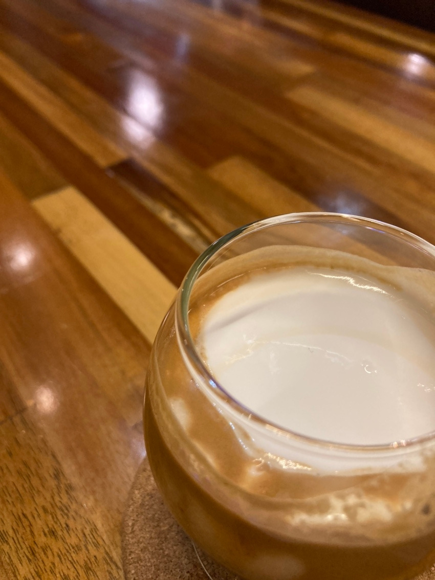 작고 귀여운 둥근 잔에 층이 나눠진 것만 같은 선명한 비주얼. 따듯하고 평온하다.