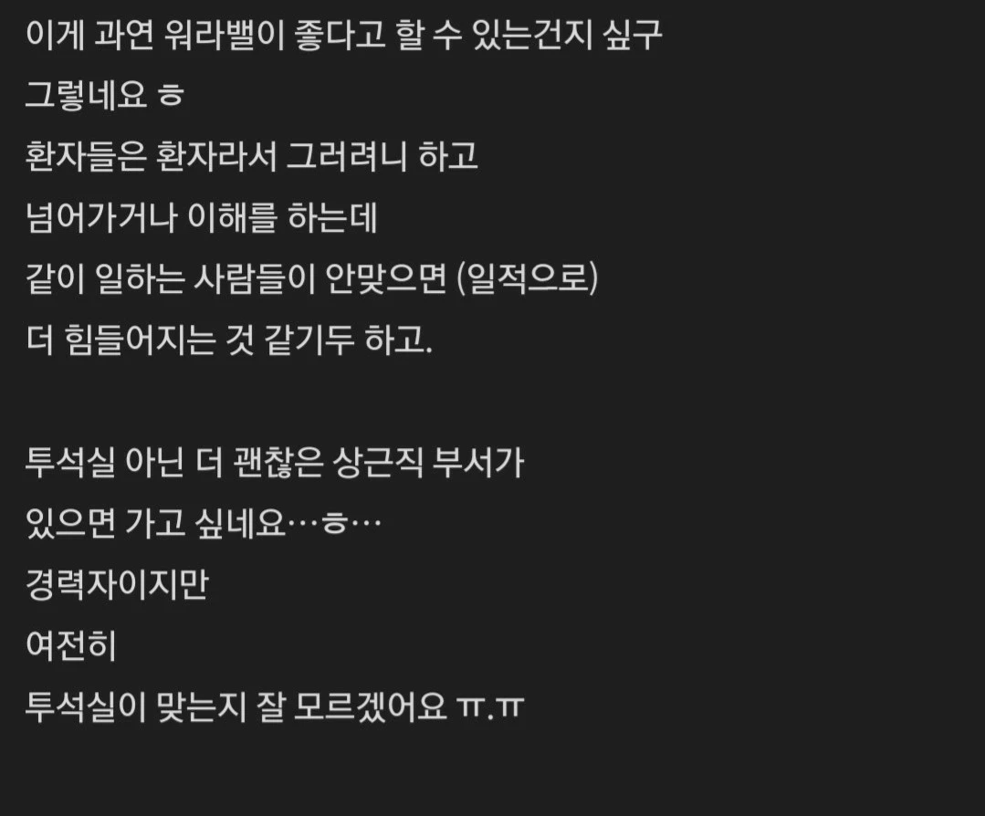 하지만 신장실이 업무강도가 세기 때문에..