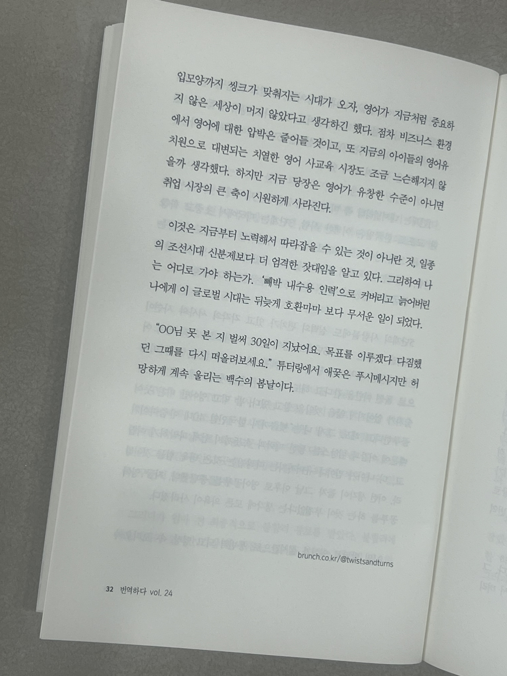한 달쯤 전에 브런치에 '내가 영어공부를 중단한 이유'라는 주제로 글을 썼고, 이 글은, 모두가 영어공부를 열심히 하는 시대에 중단을 왜 했을까 하는 궁금증을 자극했는지 소소한 나의 글들 중 가장 조회수가 많은 글이 되었다.