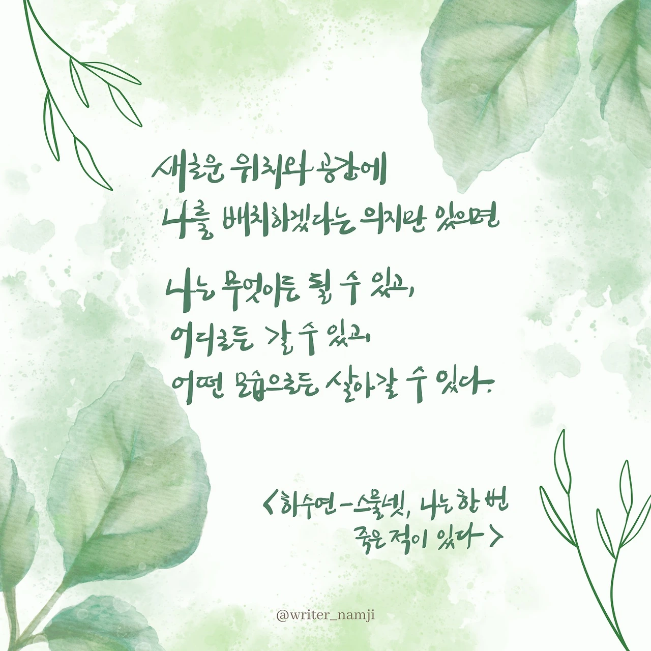 새로운 위치와 공간에 나를 배치하겠다는 의지만 있으면 나는 무엇이든 될 수 있고, 어디로든 갈 수 있고, 어떤 모습으로든 살아갈 수 있다.