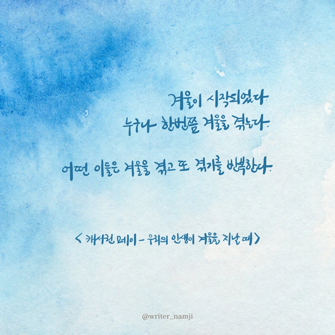겨울이 시작되었다. 누구나 한번쯤 겨울을 겪는다. 어떤 이들은 겨울을 겪고 또 겪기를 반복한다.