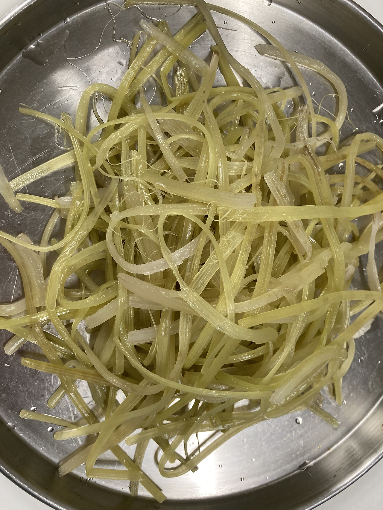 이렇게 만드는 과정도 힘들다. 햇볕에서 채취하는 것부터 고생이다. 데치고 껍질 벗길 때 손톱 밑이 까맣게 물들기도 한다.
