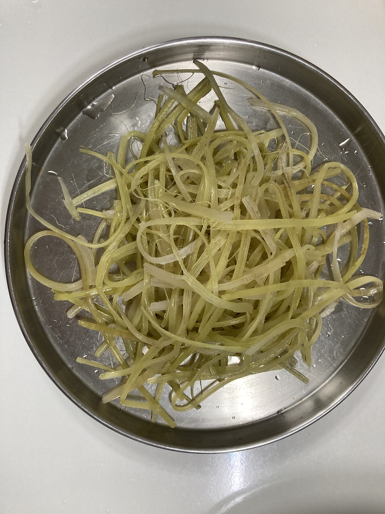 이쑤시개로 갈라서 쭉쭉 찢었다. 들깨가루를 넣어 볶아도 맛있다.