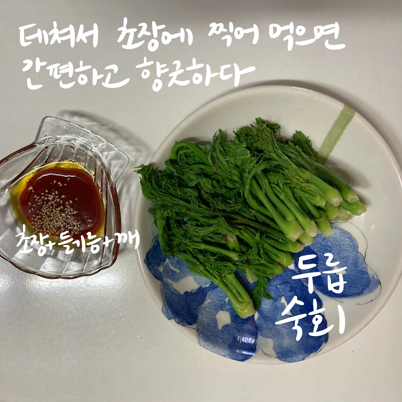 참두릅은 억세지기 전에 먹는다. 튀김이 맛있을 것 같은데, 데쳐서 초장 찍어 먹었다.