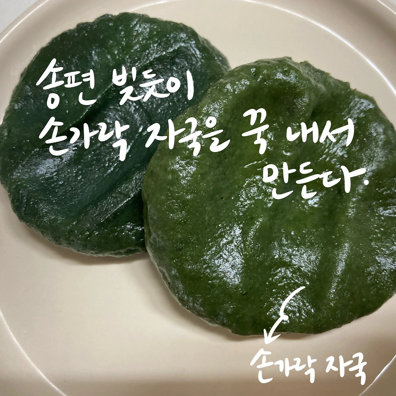 명절에 송편을 빚을 때 양 손가락으로 꾹 눌러 손 자국을 냈었다. 쑥개떡에도 손가락 모양의 자국이 나 있다.