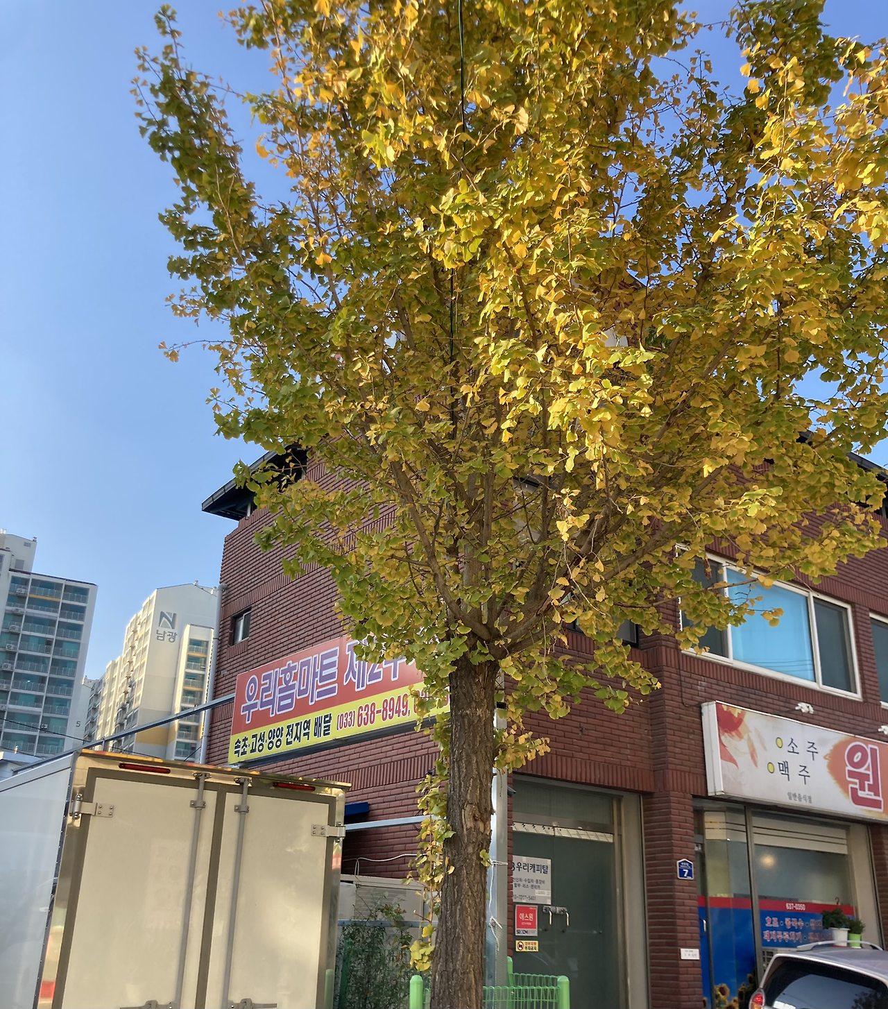 퇴근 후, 저물어가는 태양빛에 노랗게 물든 은행나무를 지나 카페로 향했다. 건물 앞으로 그림자가 길어진다.