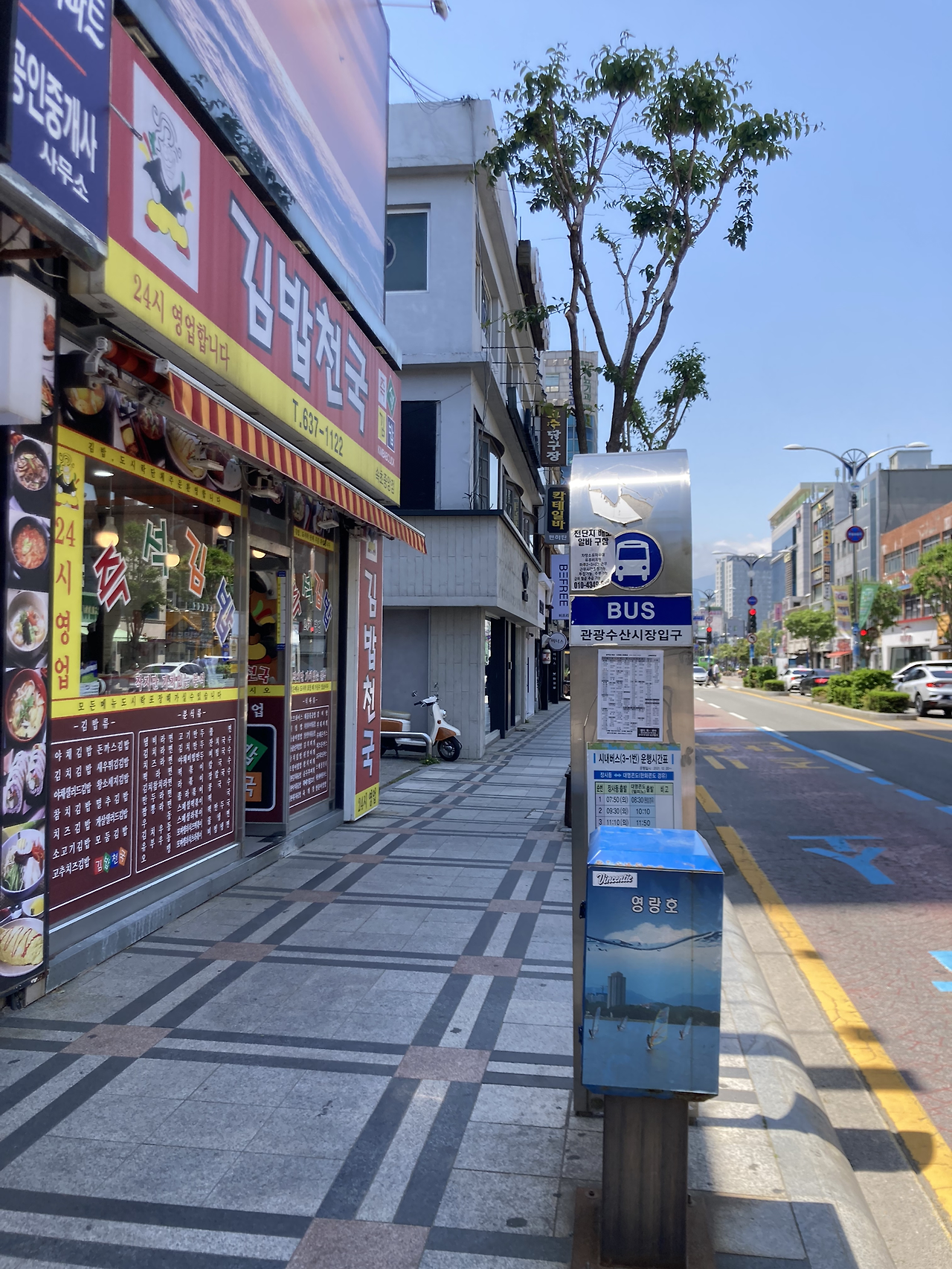지금은 속초에 영화관이 메가박스 하나뿐이지만, 그때는 소규모 영화관이 몇 곳 있었다고 한다. 동보극장, 중앙극장, 대원극장... 대원극장은 지역에서 모르는 사람이 없는 곳이었는지, 없어지고도 한참 동안 버스정거장 이름만은 대원극장이라고 남아있었다. 현재 시내 로데오거리 김밥천국이 있는 자리다. 정거장 이름은 <관광 수산시장 입구>로 바뀌었다. 그다음 정거장이 <갯배 입구>다. 이름과는 달리, <갯배 입구> 정거장이 시장과 더 가깝다.