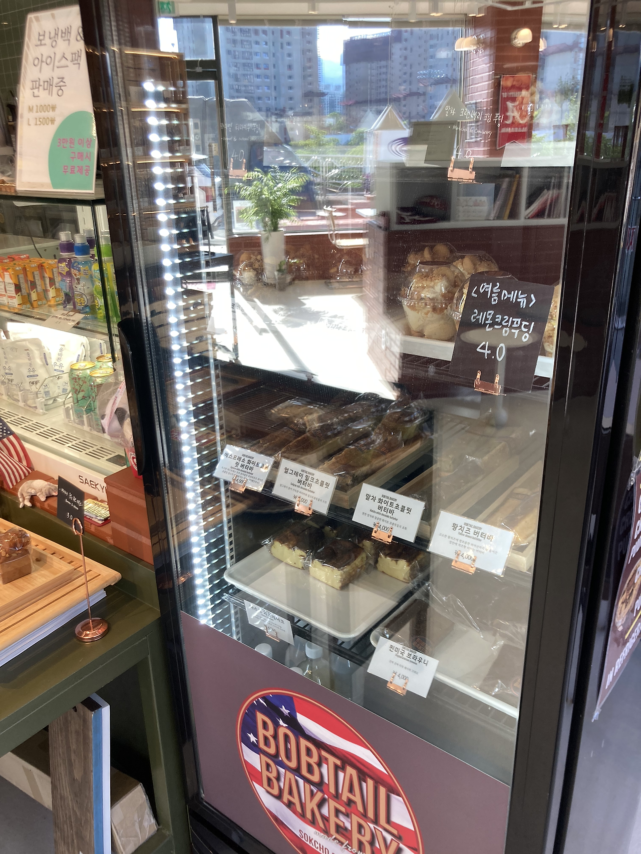 빵 냉장고에서 바스크 치즈 케이크를 한 조각 꺼내 아이스 아메리카노와 함께 계산했다.