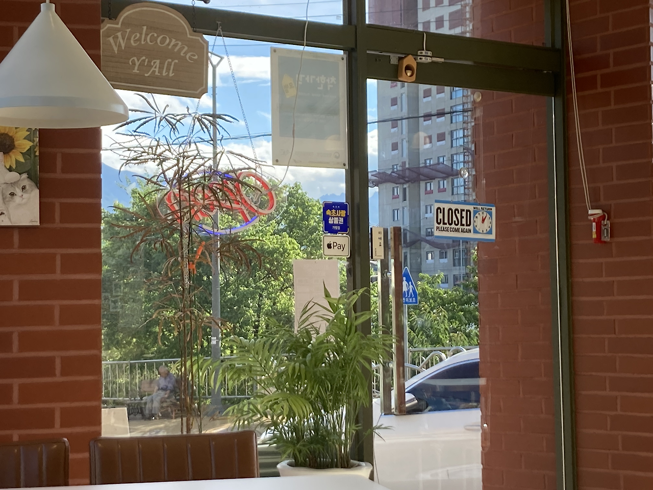 바깥이 워낙 밝아서 카페 안은 잘 안 보이지만, 안에선 밖이 잘 보였다.