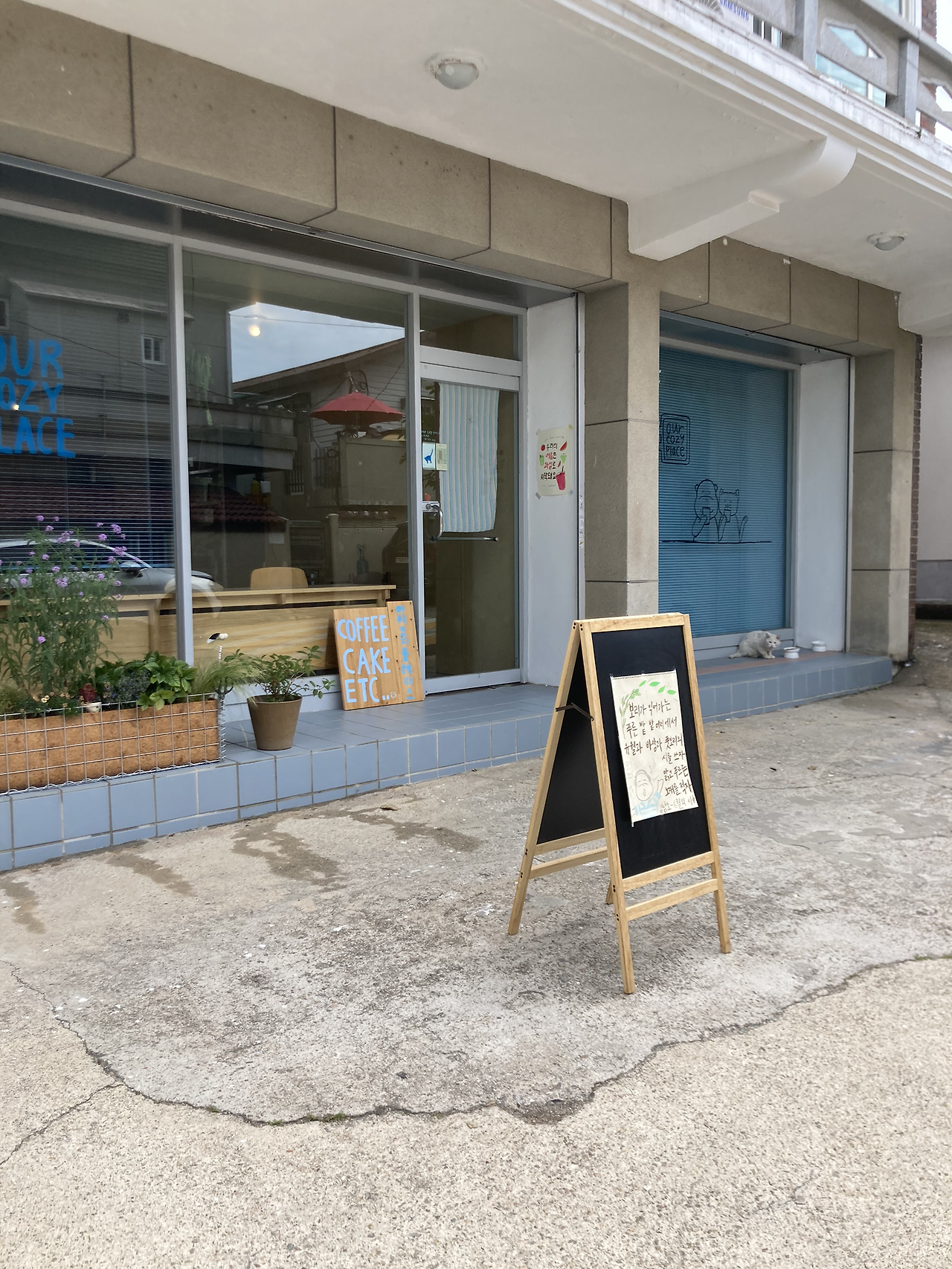 하얀 고양이는 문 앞에 오도카니 앉아있다가 손님 들어서는 길에 따라서 안으로 들어가고 싶어 할 때가 있다. 친구(카페 사장)가 허락해 주면 들어오는데, 언젠가는 가장 편한 소파자리에 누워 편하게 잤다. 그 자리 나도 앉고 싶었는데... 가까이 가면 고양이가 비켜날 수도 있고, 어쩌면 사이좋게 같이 앉을 수도 있겠지만, 편해 보여서 방해하고 싶지 않았다.