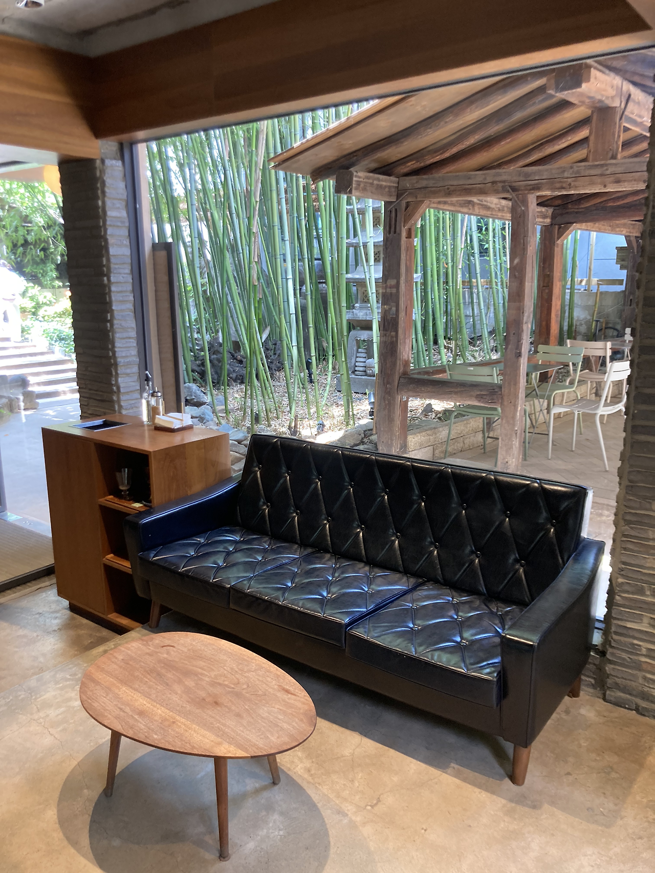 나무 벽면의 따스한 느낌이나 창 밖의 대나무, 풀들의 푸른 느낌. 에어컨을 켜두기도 했지만 어느 바다뷰 못지않게 시원한 느낌이 드는 공간이다. 여기서 한 시간 정도 시간을 보냈다. ‘여기에 살면 너무 더운 날 이 자리에 앉아 잠시 쉬어갈 텐데’ 생각하면서.