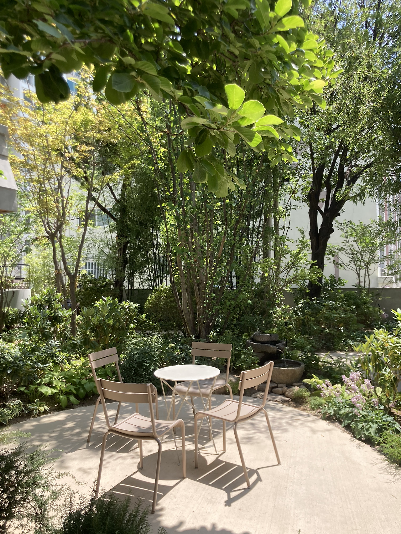 날이 이토록 뜨겁지만 않았다면 앉아봐도 좋을 정원 속 의자가 많아졌다. 사진으로 보면 유럽의 화창한 노천카페 같기도 하다.