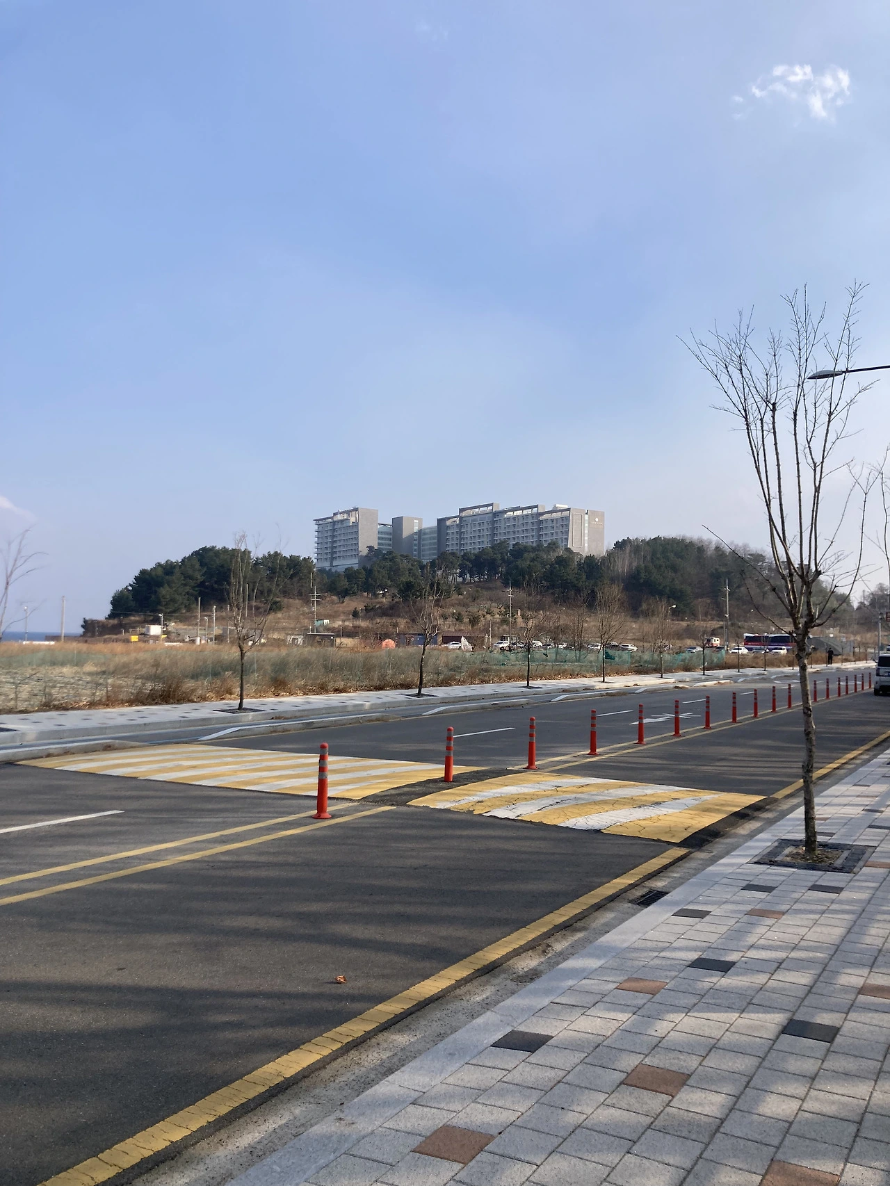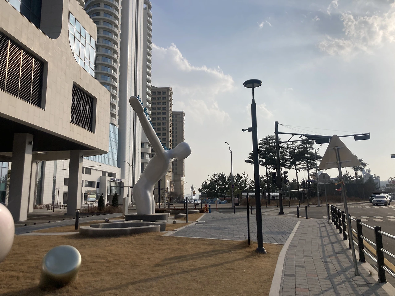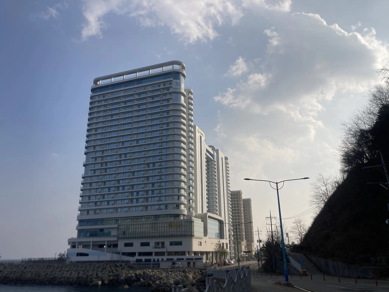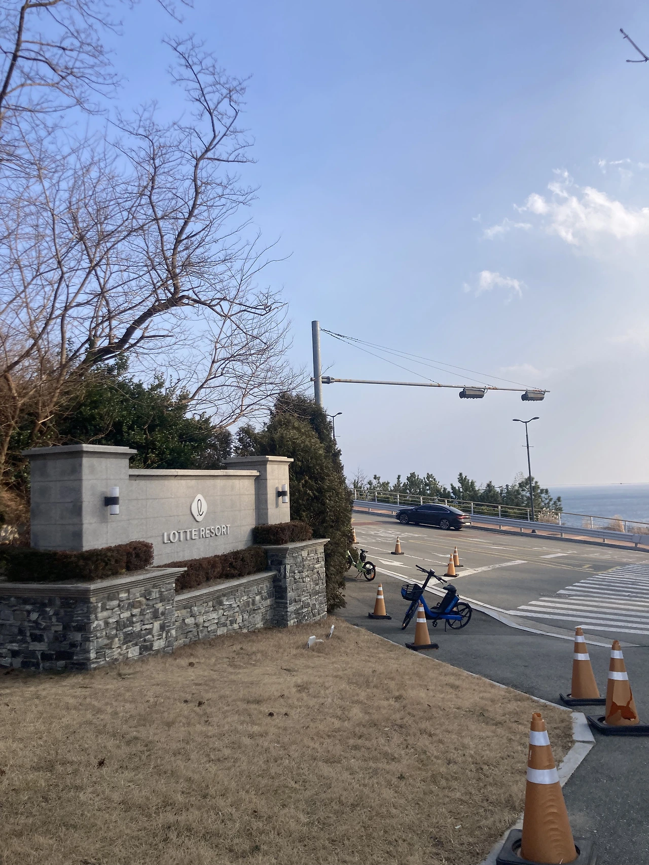 <롯데 리조트 속초>에 가려면 바다향기로를 산책하다가 연결된 계단을 올라가도 되고, 보통은 이쪽 정문으로 들어간다. 해안 절벽 위에 있기 때문에, 어디에서 출발해도 경사가 있다.
