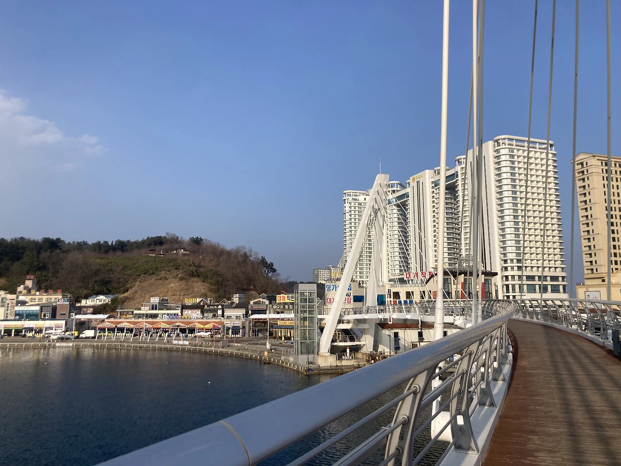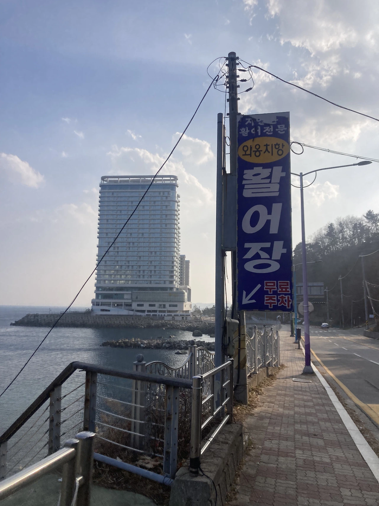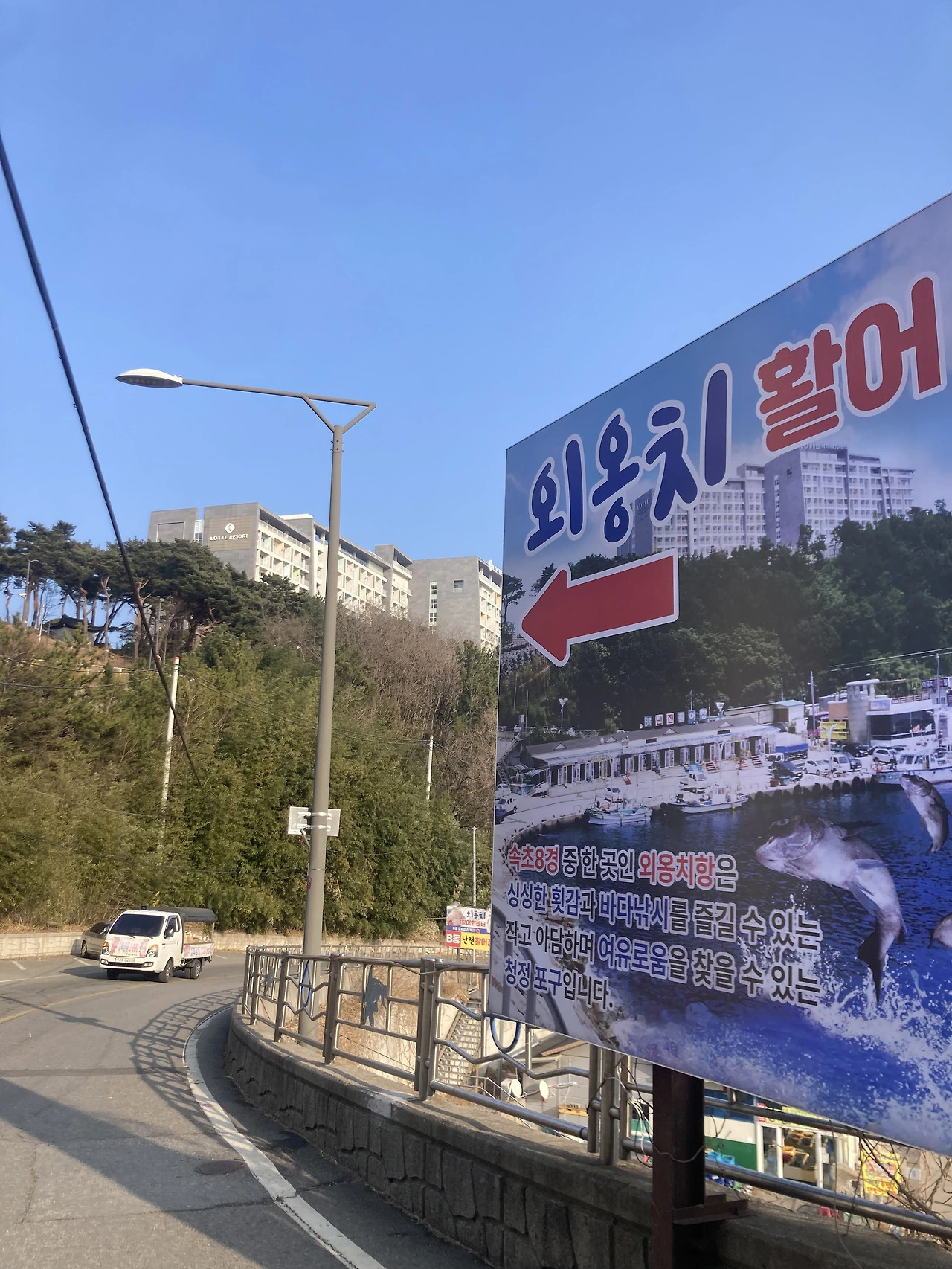 언덕을 넘으면 외옹치항이 나오고, 그다음이 대포항이다. 앞에 커다란 숙소가 보이는데 여기가 바로