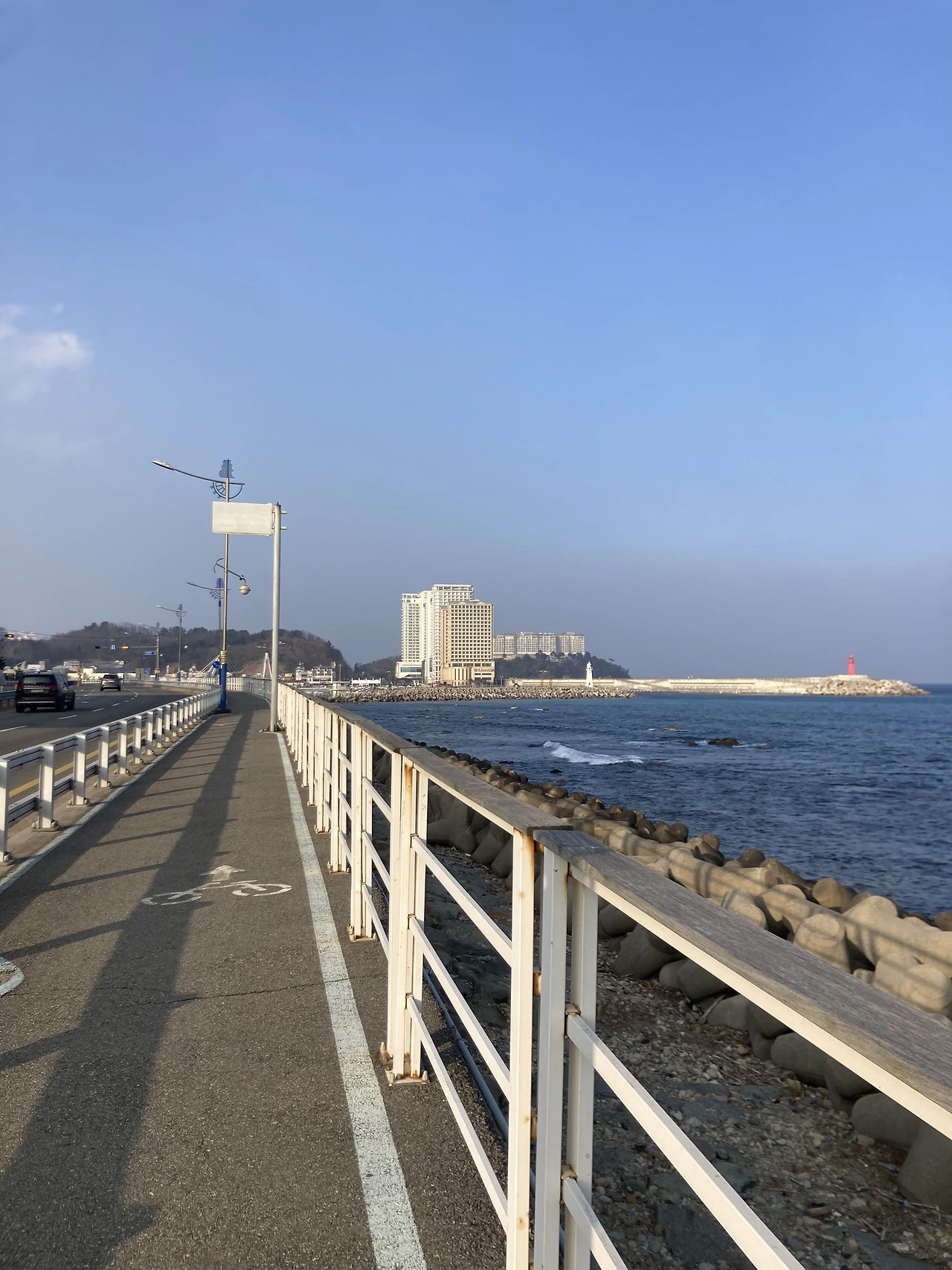 이제 거의 다 왔다. 이 길을 좋아한다. 바다 바로 옆이라 풍경이 시원하다.