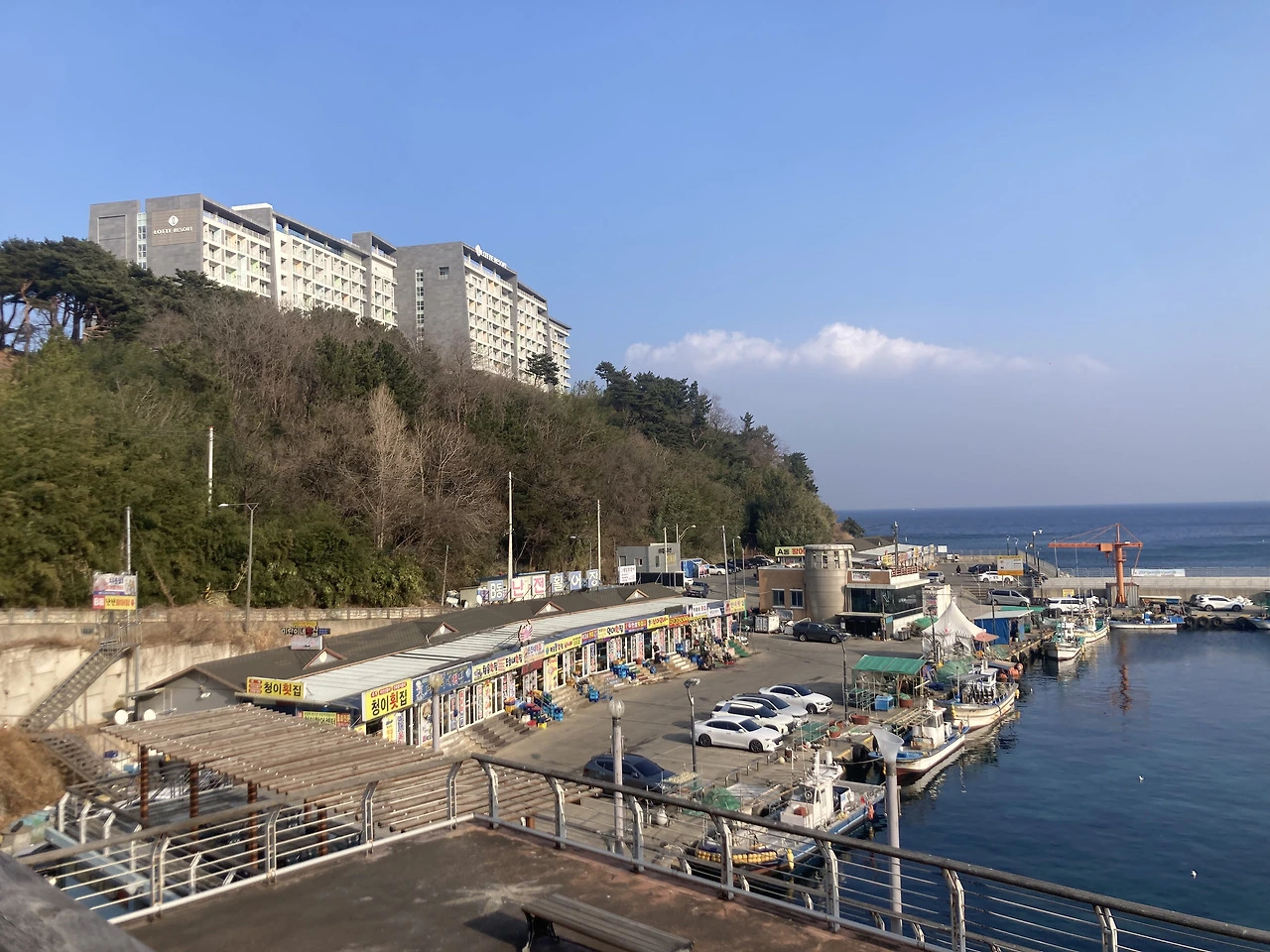대포항 주차장을 지났다. 여름 성수기에도 빈자리가 많은, 아주 넓은 주차장이다. 카시아 리조트가 세워진 곳도 전에는 이런 주차장이었다.
