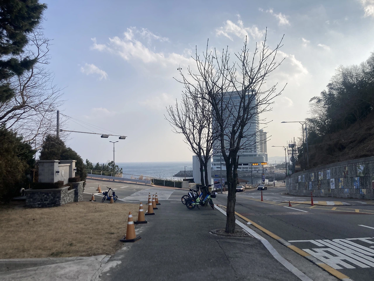 바닷가로 가서 ‘바다향기로’를 걸어도 좋지만, 겨울에 휴업 중이라 이쪽 길로 갔다.