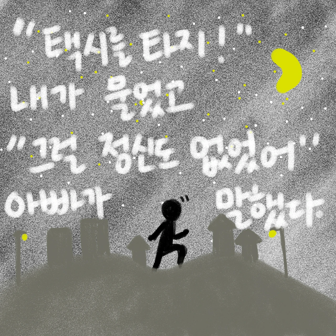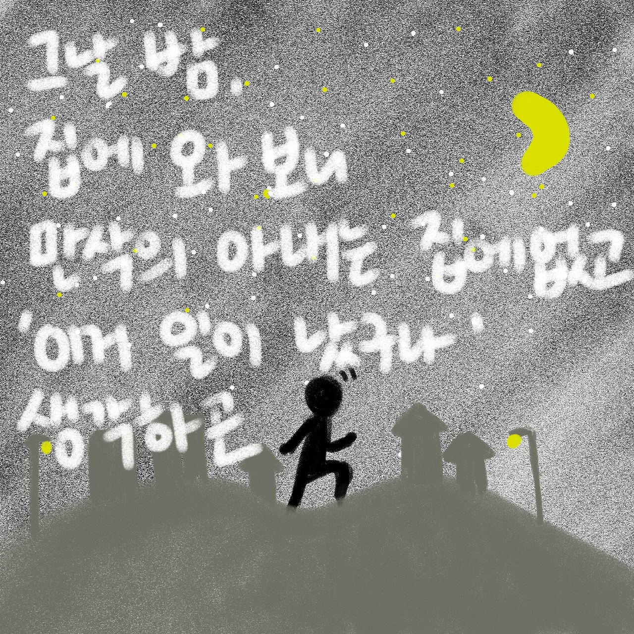 비틀 비틀 취했던 다리가 놀라서 번쩍 서고, 무작정 동네 언덕 위를 달렸다.