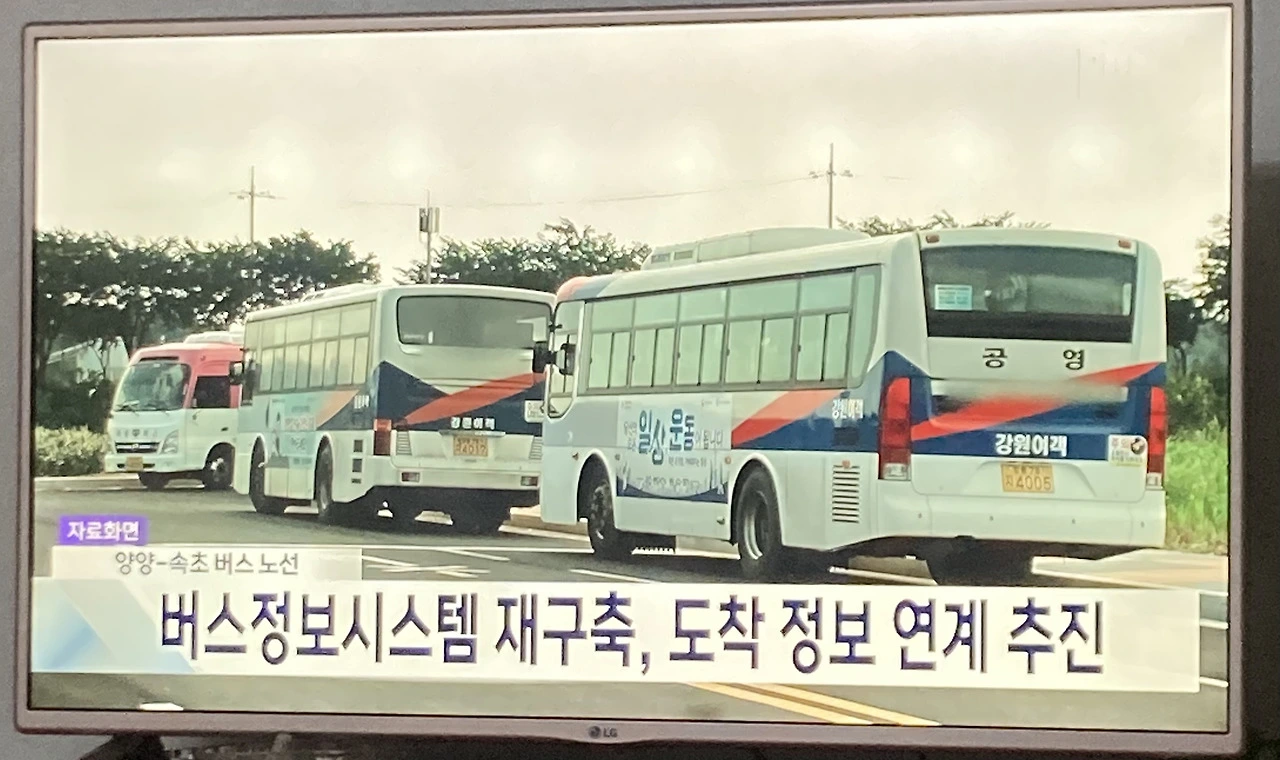 9번, 9-1번 버스가 다니는 속초, 양양 사이에 버스 정보를 공유하는 시스템을 새로 만든다고 한다. 그동안은 버스 시간표를 보고 언제쯤 오겠구나 짐작하며 기다렸는데, 곧 정류장 모니터에서 버스 도착 정보를 알 수 있을 것 같다.