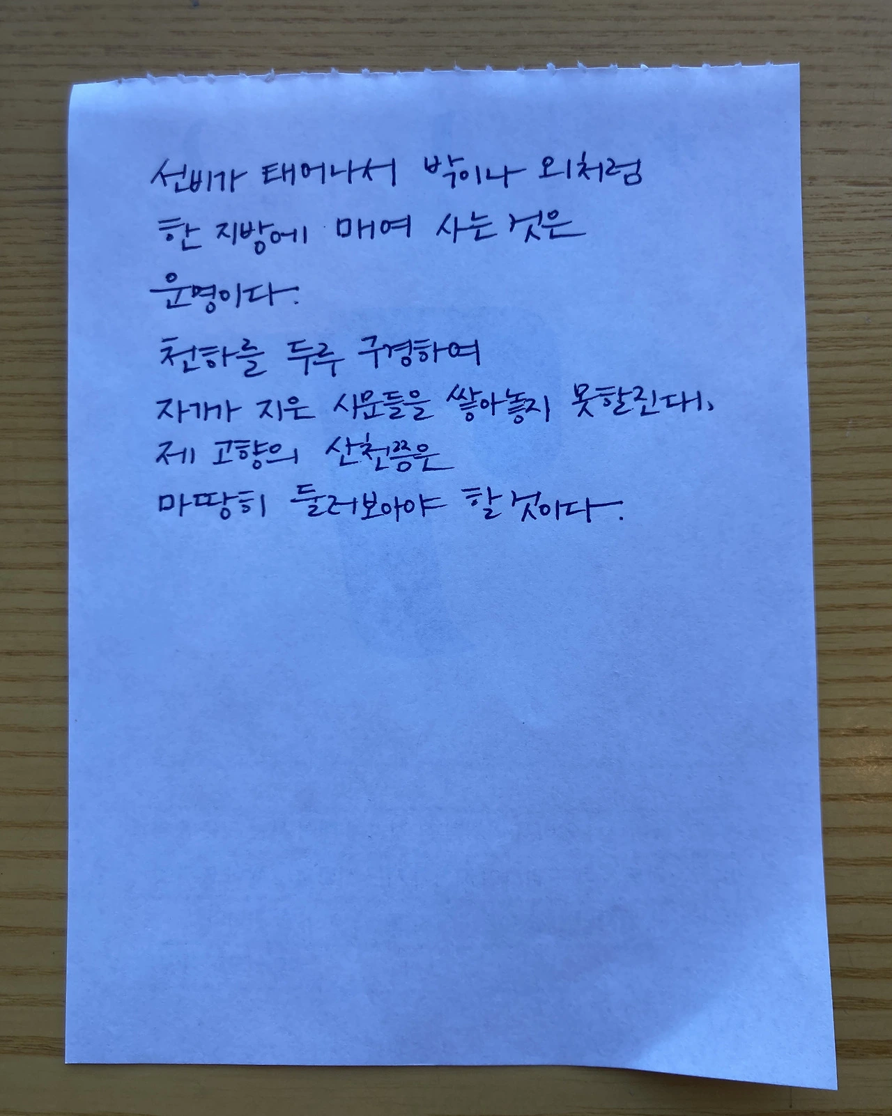 일단은 생각만 한다. 그러다 오후 늦게라도 7번 버스를 타고 일단 소공원까지만 가본다. 때로는 국립공원 사무소에서 켄싱턴 호텔로 이어지는 도보 40분 거리의 길을 걷는다. 그러나 하루 시간이 비면 비선대나 흔들바위 중 하나를 골라 가본다. 그때도 끝까지 가는 것은 아니고, 왠지 좀 앉아있고 싶어서, 뭐 좀 먹다가, 해사 산 너머로 넘어가려는 기미가 보이면 ‘오늘은 여기까지다’하고 올라온 길로 다시 내려오곤 했다.