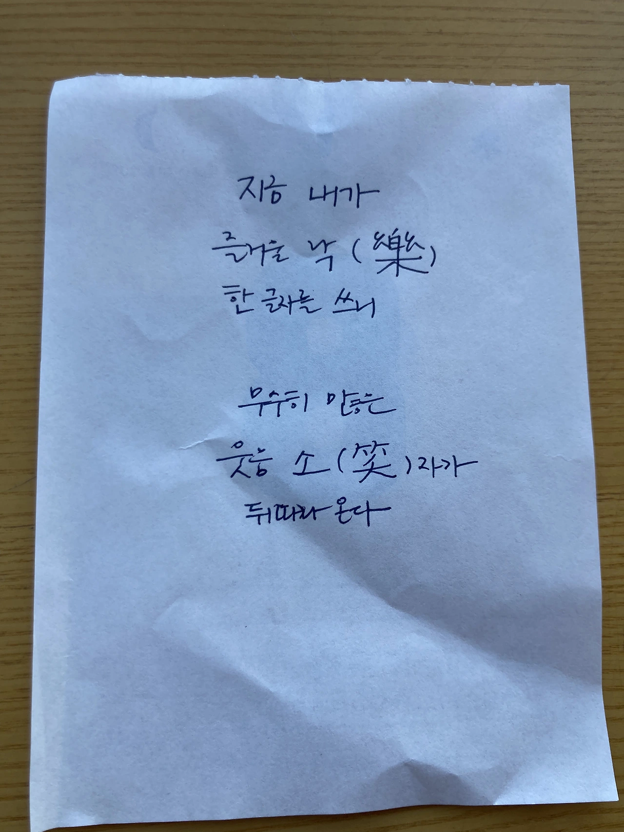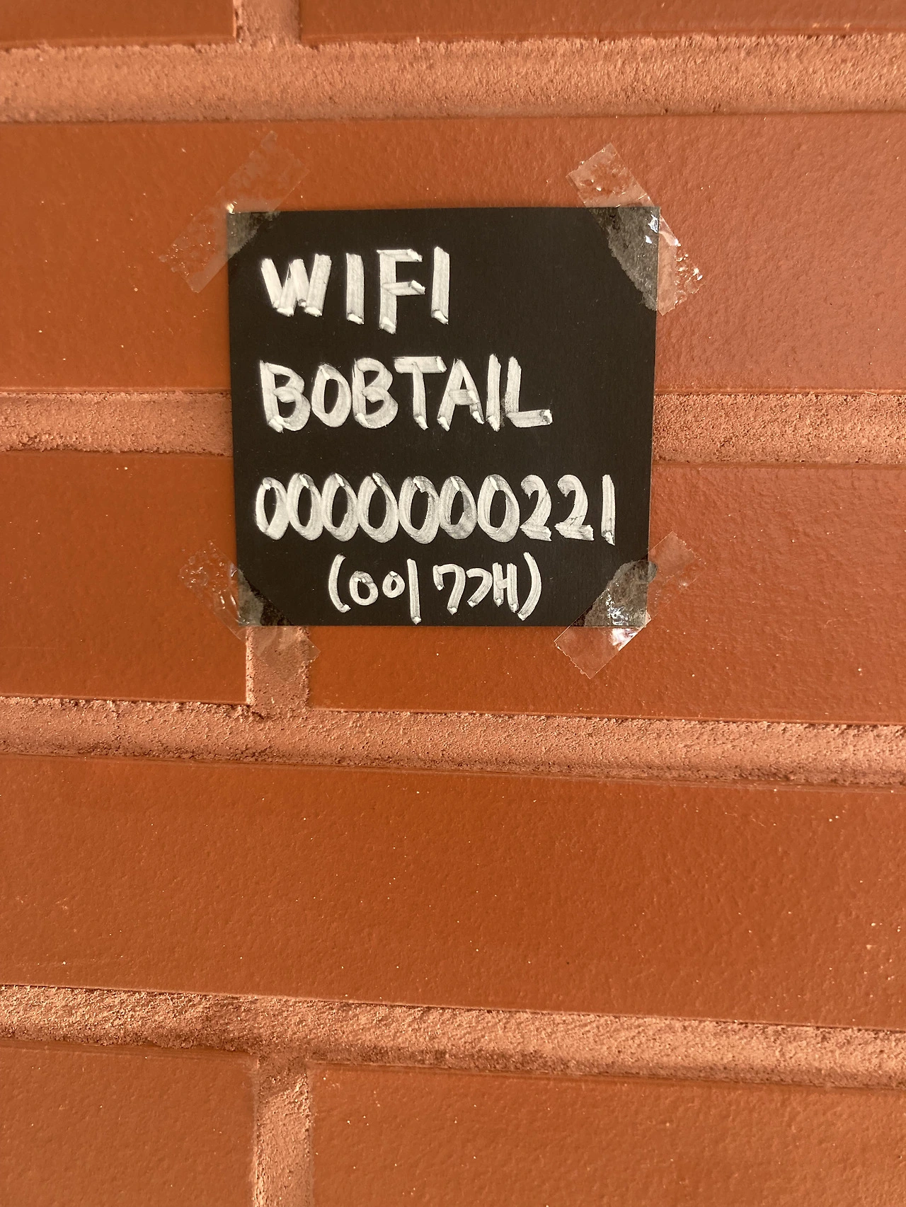 와이파이 비밀번호를 찾아 두리번두리번 하는데, 붉은 벽에 붙어 있는 메모.