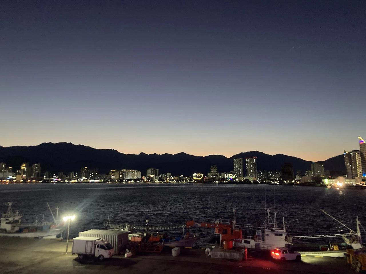 1인당 2조각씩 먹고 해 지는 설악산을 바라보며 집으로 가는 길. 아침 해는 아직 비슷한 시간에 뜨지만, 확실히 저녁 해가 길어졌다.