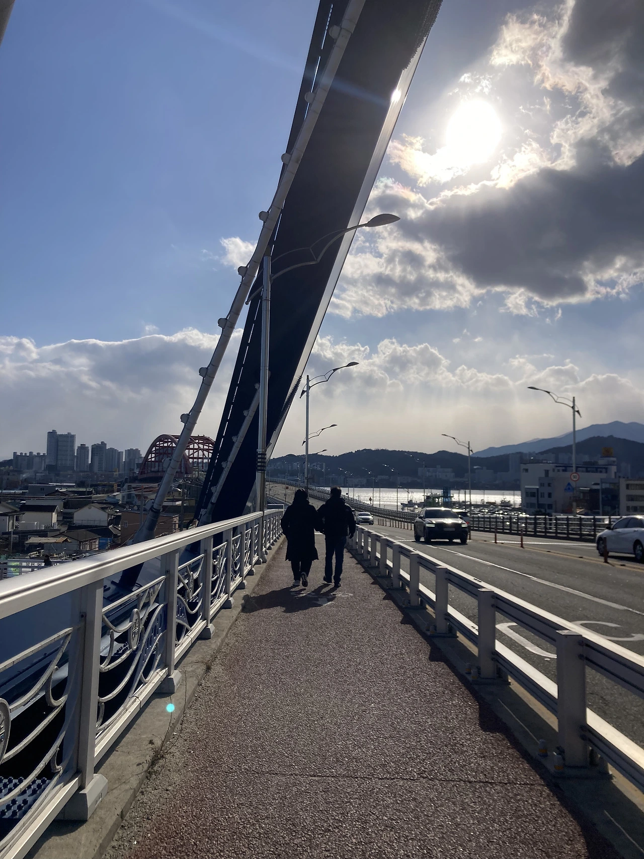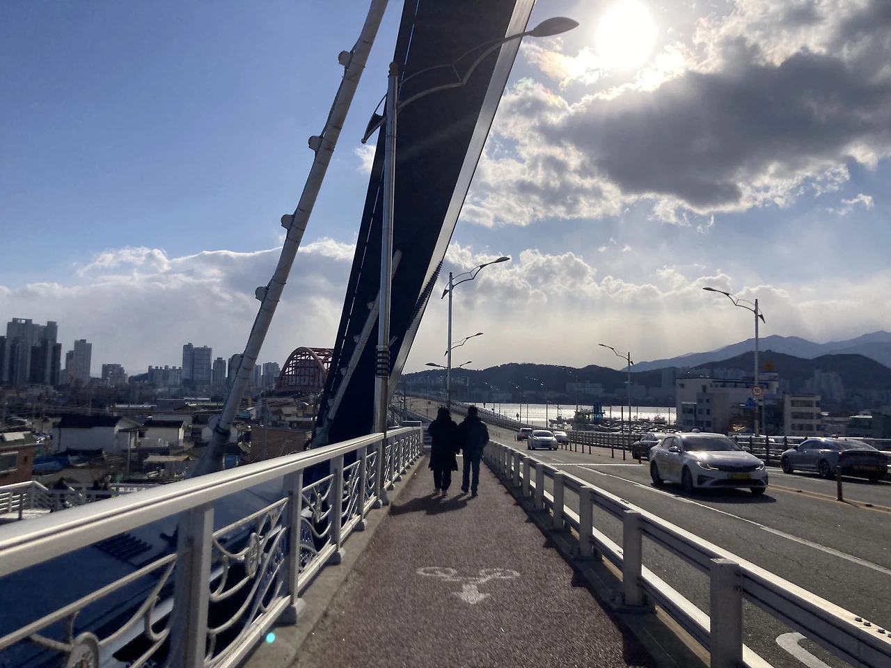 금강대교를 걸어가다가 앞서가는 모르는 사람의 좋은 사진을 찍었다. 아는 사이면 보내주고 싶네.