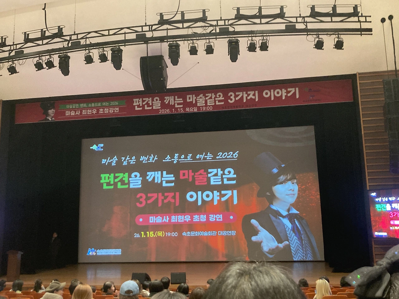 저녁엔 속초문화재단 주최로 마술사 최현우 강연이 있었다.