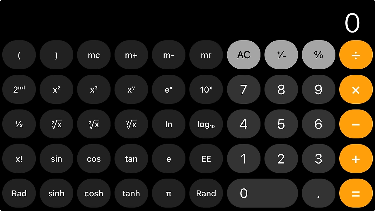 중간에 관객 참여형 마술을 몇 가지 했는데, 아이폰인 사람은 계산기를 가로모드로 열라고 했다. 이렇게 많은 기능이 있었다니! 몇 년 동안 핸드폰을 쓰면서 처음 발견한 계산기의 능력이었다.