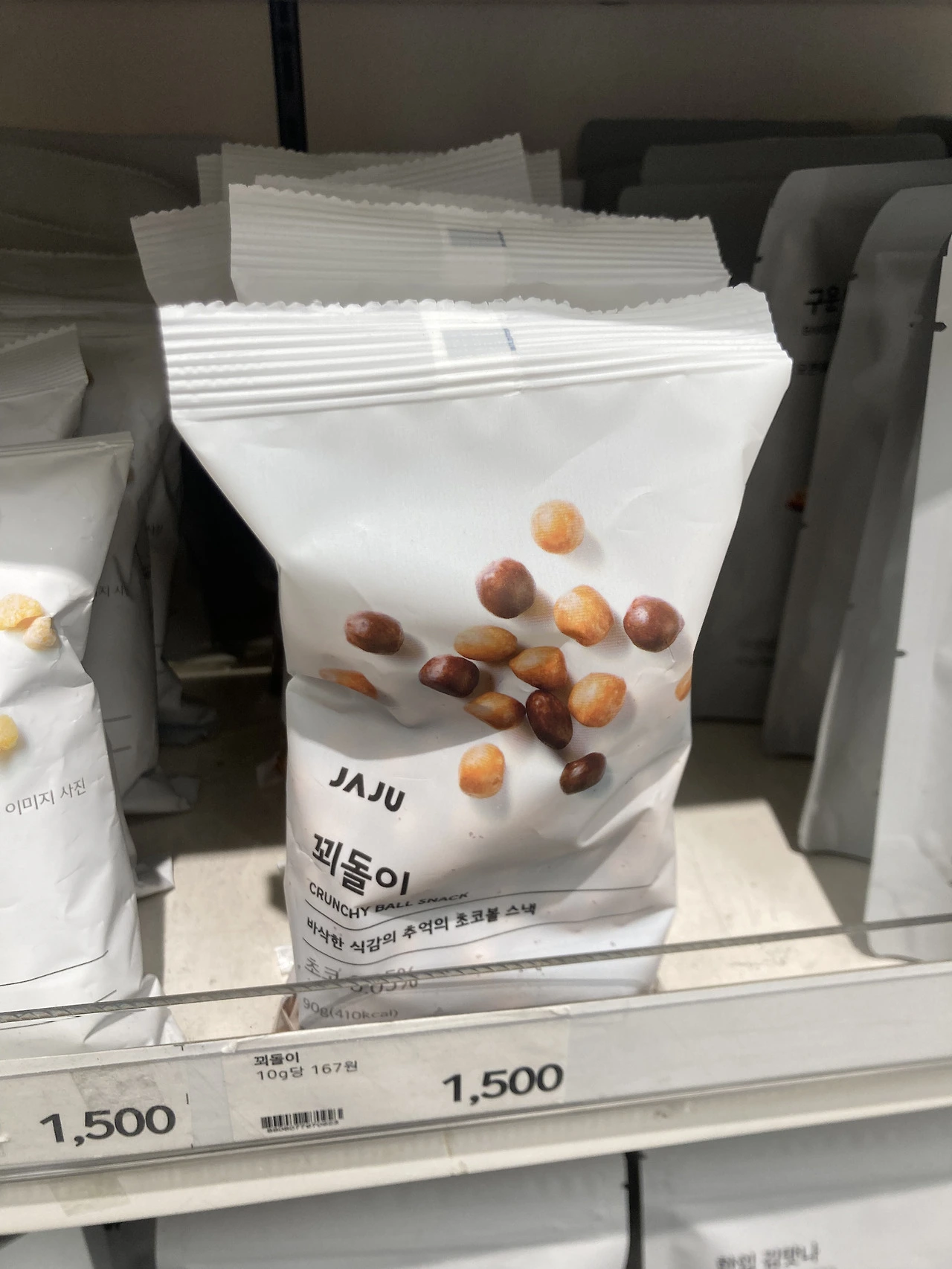 추억의 불량식품 꾀돌이과자. 하나로마트에서는 큰 봉지에 담긴 것만 봤는데, 자연주의 식품코너에 소포장된 꾀돌이가 있었다.