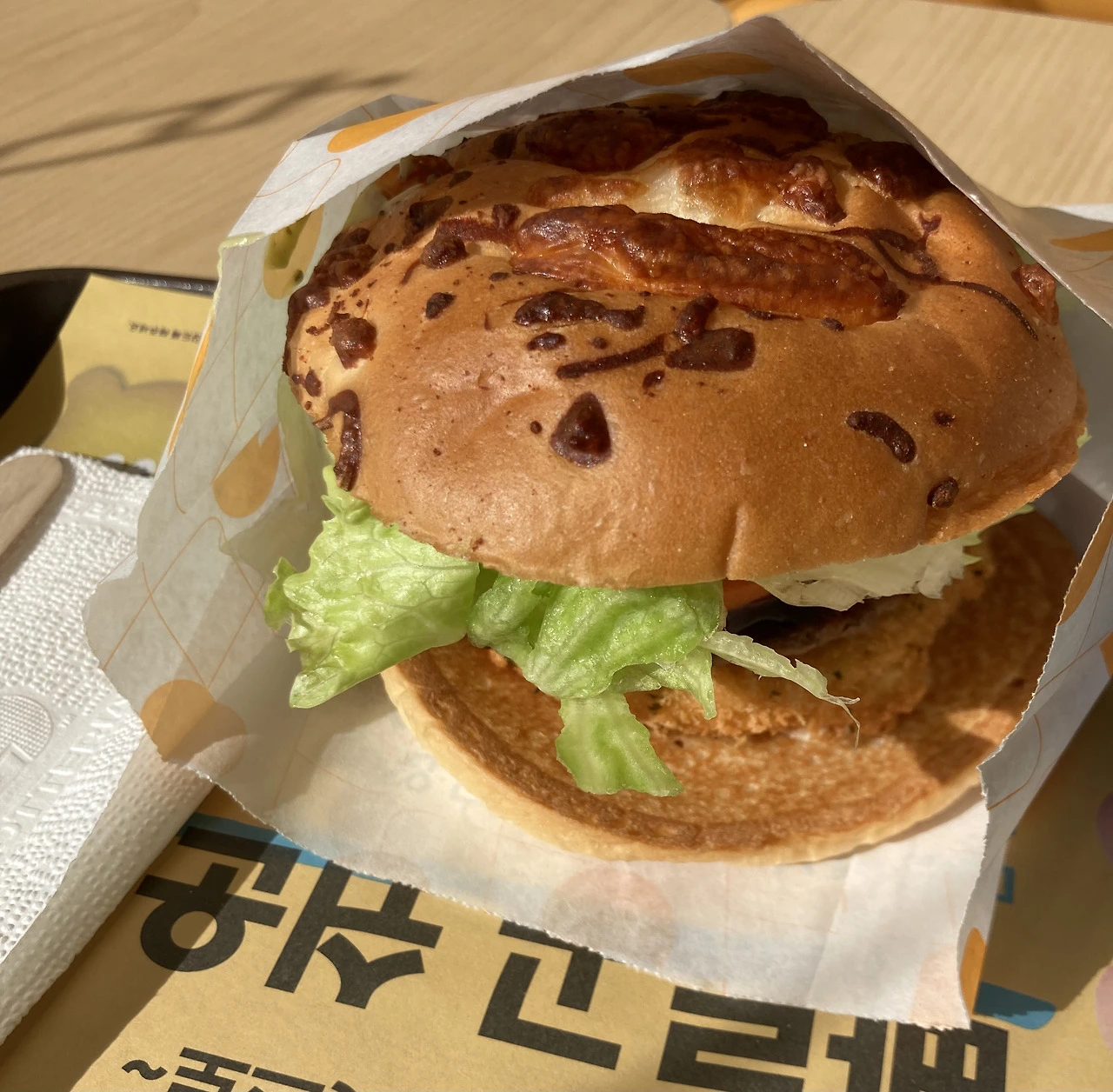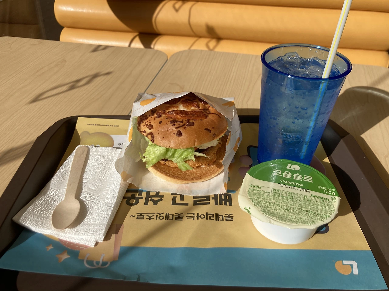 오후엔 새로 생긴 롯데리아에 갔다. 1년 전에 새로 나와 먹고 싶었지만, 그 매장에는 팔지 않는 메뉴라 못 먹었던 그 버거가 있었다.
