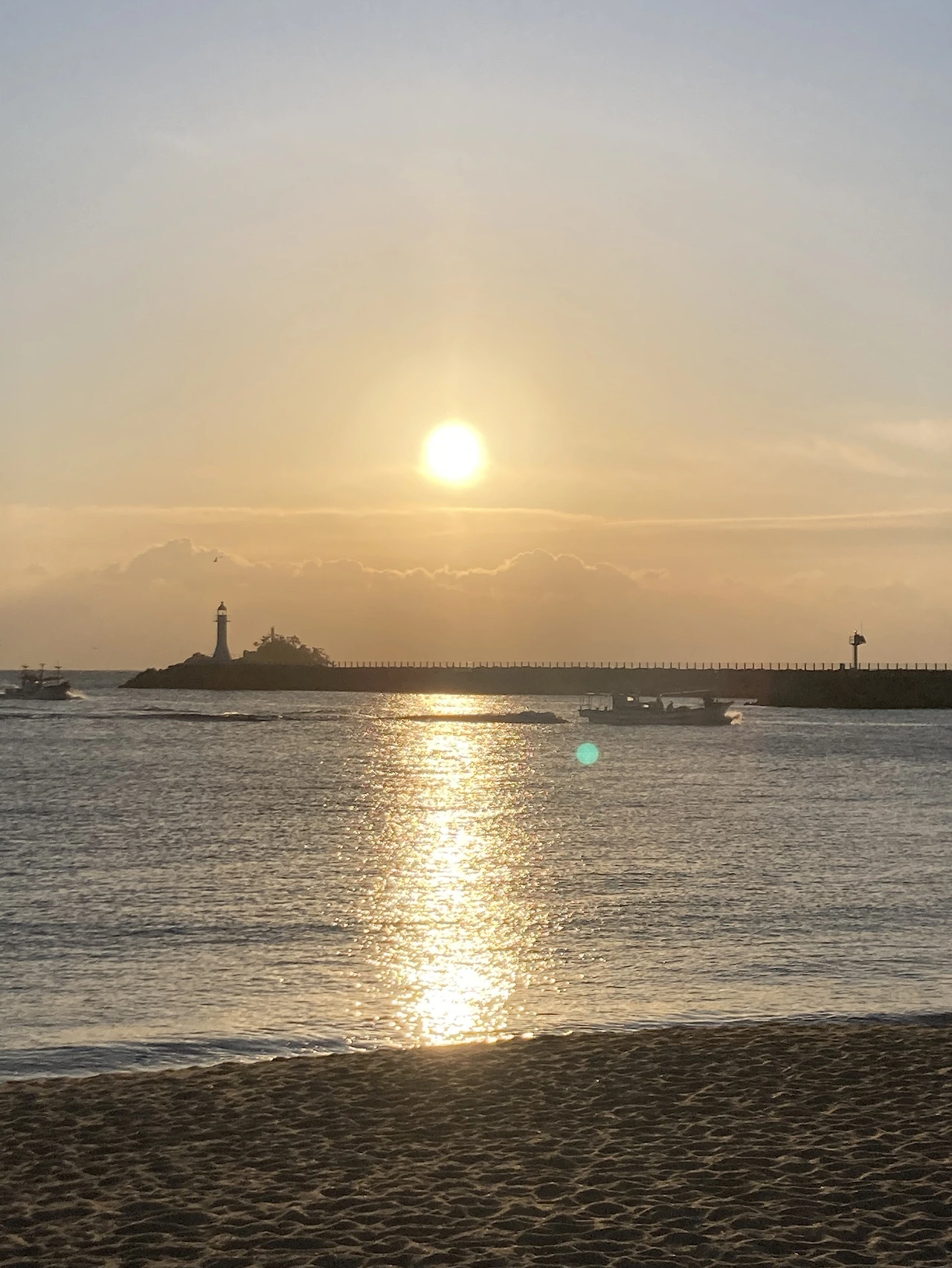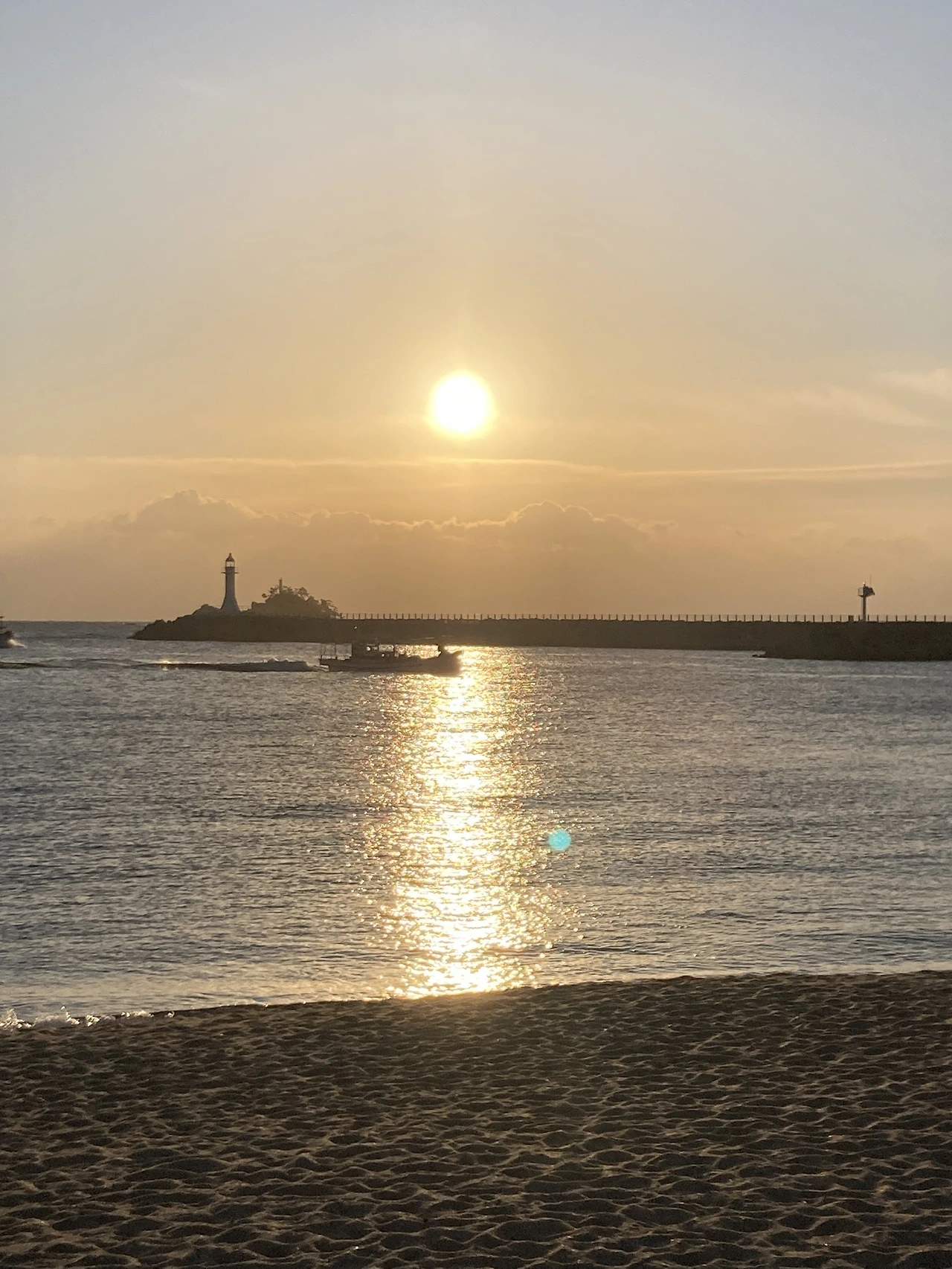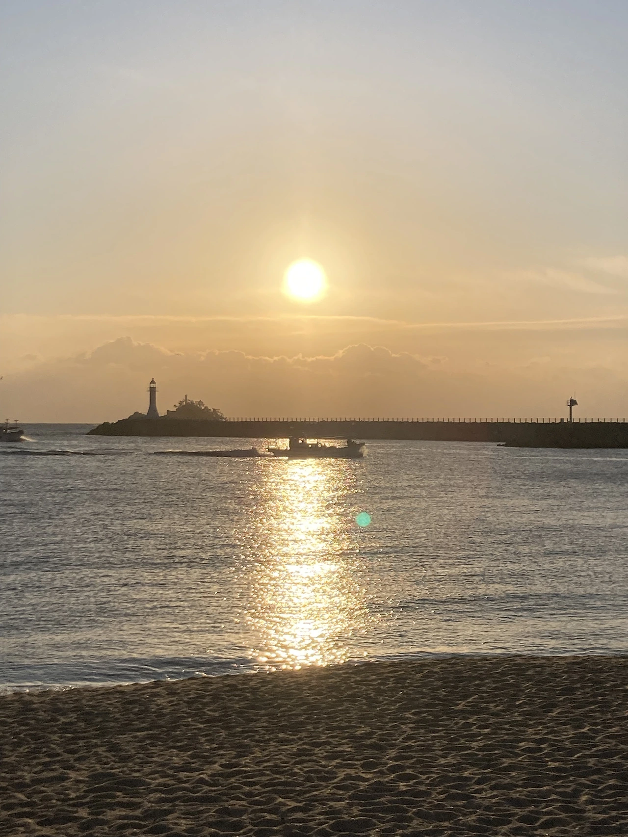 태양이 만든 카펫 위로 미끄러져 들어오는 어선. 만선일까?
