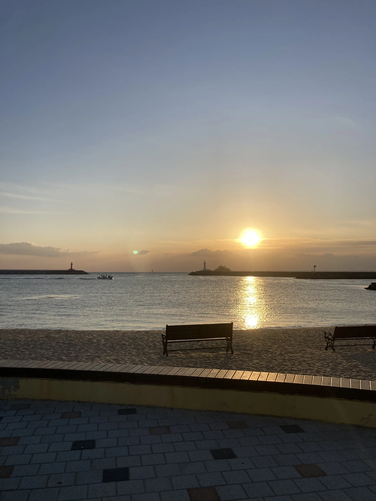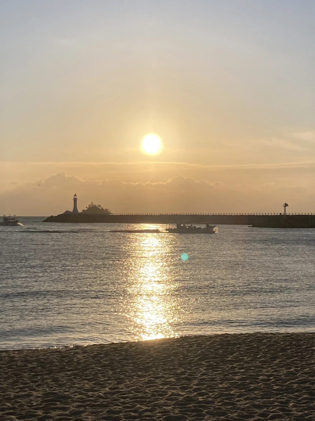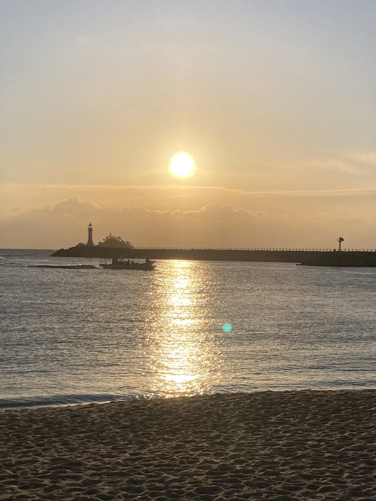 태양이 만든 카펫 위로 미끄러져 들어오는 어선. 만선일까?