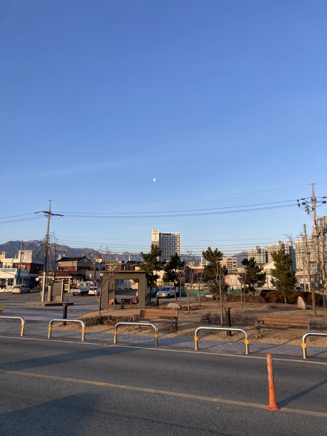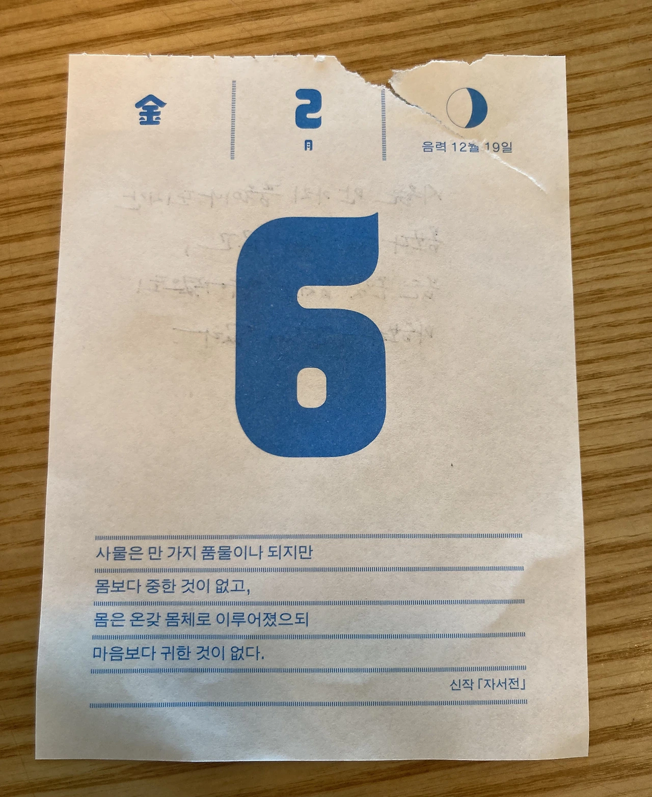 일력에 그려진 달과 비슷한 모양까지 줄어든 달이 아침 하늘에 걸려있다.