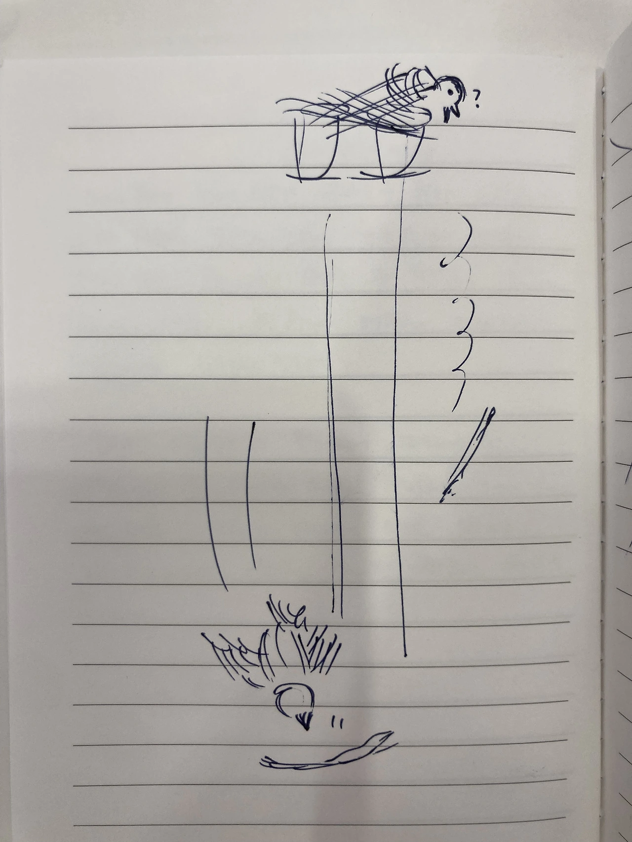 바로 아래 떨어진 건 수직으로 날아오르기 힘드니까 줍지 못할 줄 알았는데, 똑똑하게 해결했다. 우선 수직하강해서 나뭇가지를 물었다. 바닥에서 도약해 우리 집 지붕 난간에서 도움닫기를 했다.