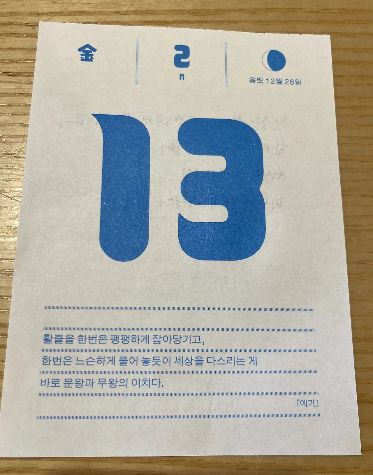 활 줄을 한 번은 팽팽하게 잡아당기고,한 번은 느슨하게 풀어 놓듯이 세상을 다스리는게바로 문왕과 무왕의 이치다<예기>